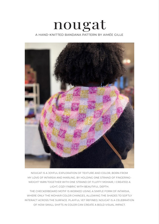 Nougat is a joyful exploration of texture and color, born from my long-standing love of intarsia and marling. By holding one strand of fingering-weight yarn together with one strand of...