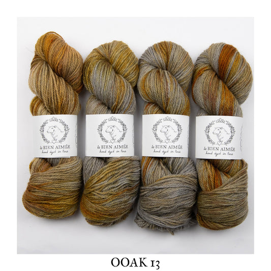 Say goodbye to Happy Accidents and hello to One of a Kinds! We’ve rebranded our uniquely beautiful skeins to better reflect their special nature. At La Bien Aimée, we hand-dye each skein, blending art and science, and sometimes, magical things happen in the dye pots.