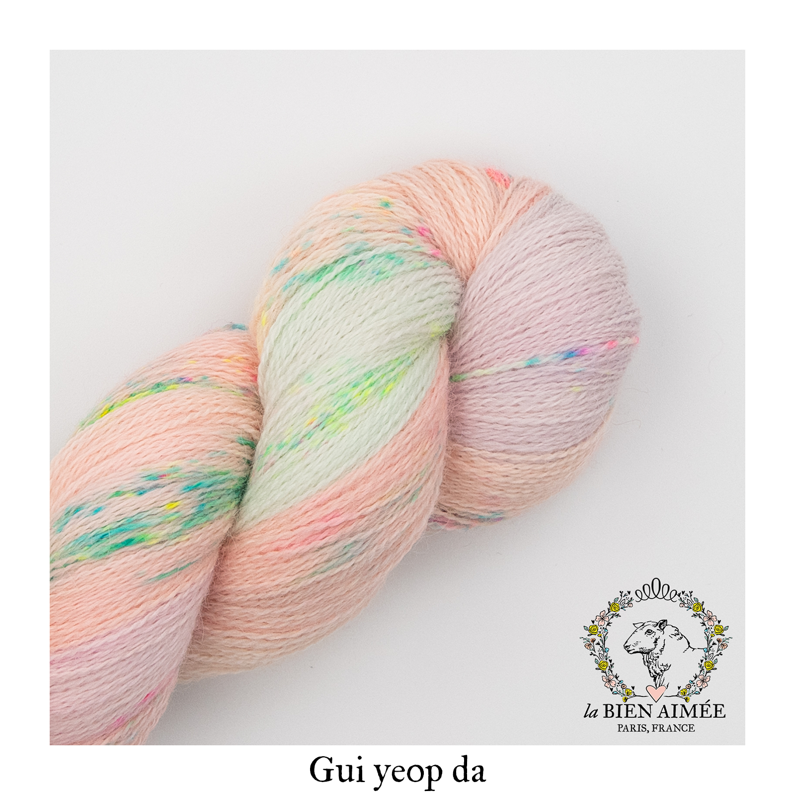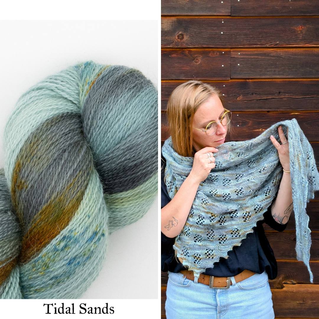 Like Helix and Felix, Alix is made to be knit either double with itself, or with other lace weight yarns, resulting in a sport weight gauge. It can also be a super soft substitute to either of these bases. It is soft and drapey, perfect to be worn next to the skin or around the neck in a lovely bandana for example. What's more, it's incredible yardage means you can get a sizable shawl out of just one skein, like in Noemie Jelly's Chèche Valse.