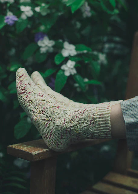 Patterns included in this collection: 2 pullovers, 1 cardigan, 2 vests, 2 shawls, 1 stole, 1 cowl, 1 snood, 1 bag, & 1 pair of socks. Find all the pattern details on Ravelry!