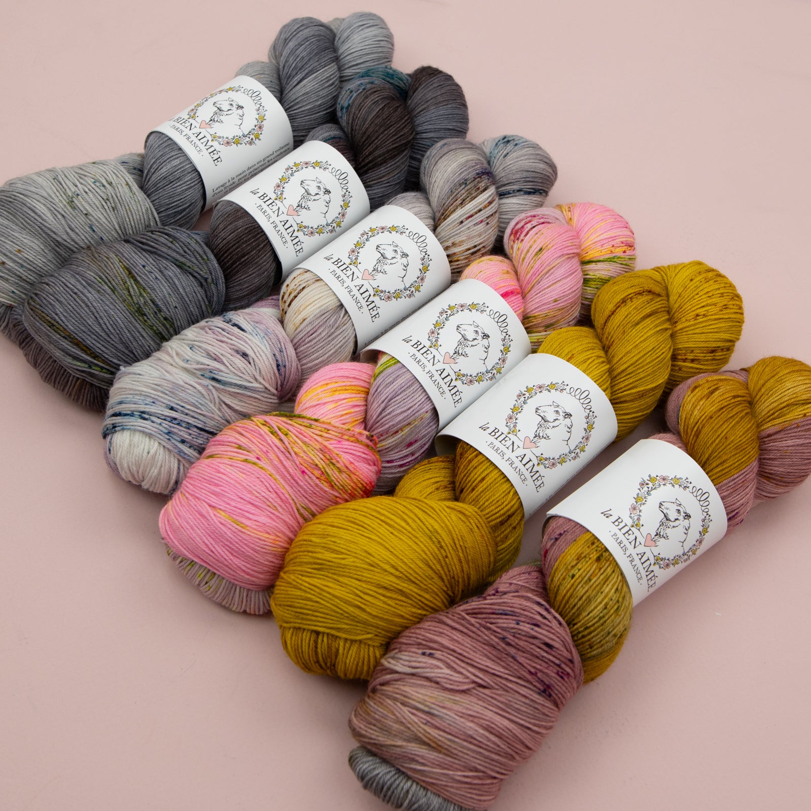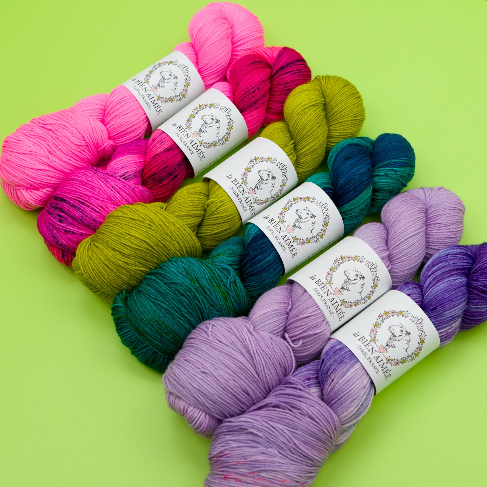Each bundle includes 2 skeins of La Bien Aimée Merino Super Sock, dyed as 6 custom fades especially for this design. With clever color planning, these two skeins are enough to knit two neck warmers: simply work the second piece with the fade reversed, starting with color B instead of A.