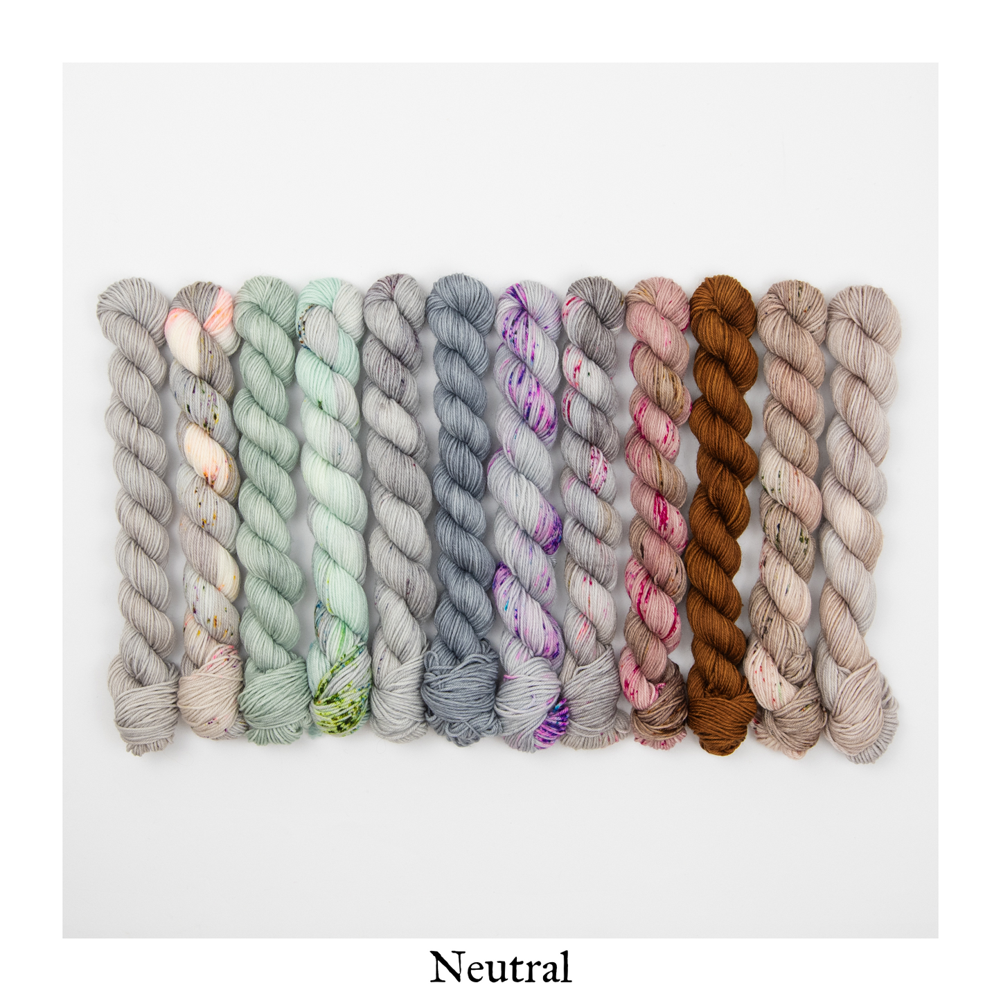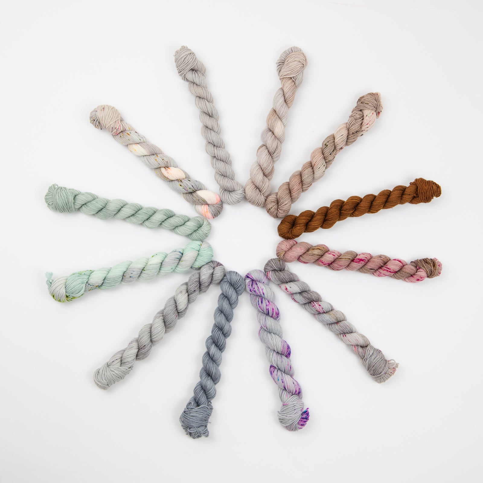 Each bundle is composed of 12 colors of Merino Super Sock mini 20g skeins.
