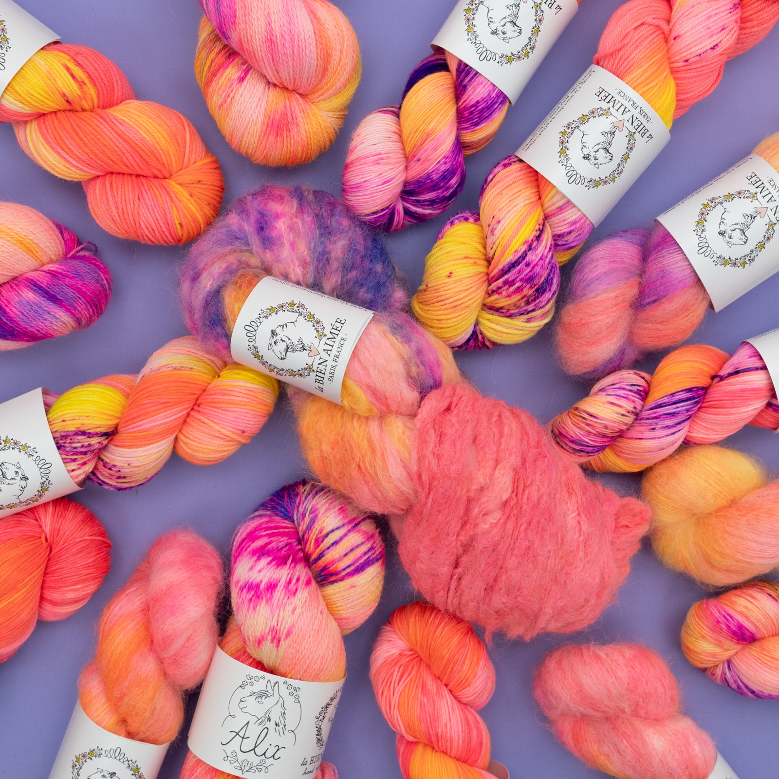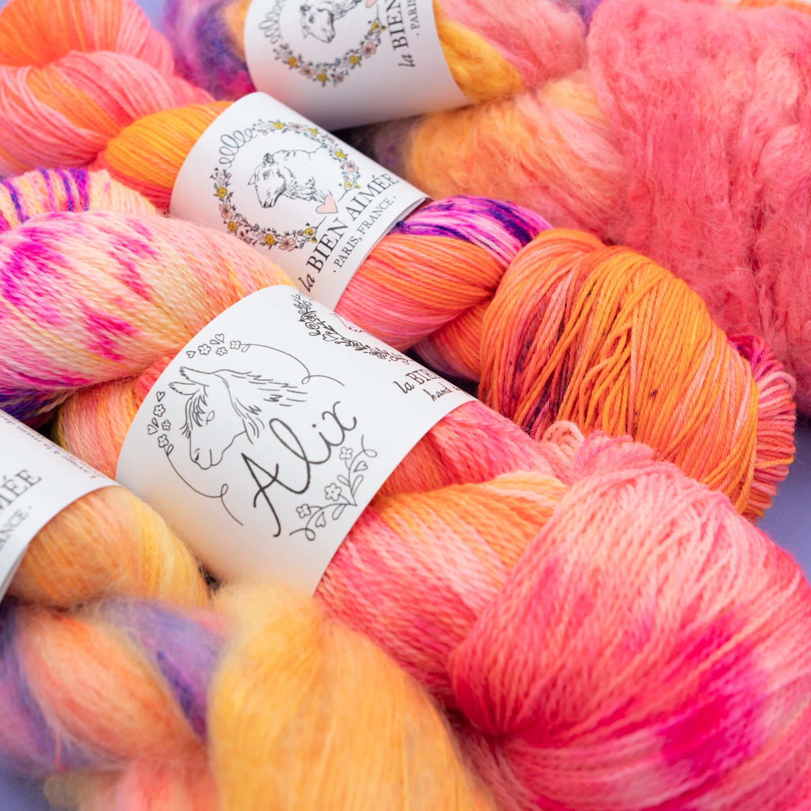Alix: 70% Falkland Merino, 30% Suri Alpaca, 650m (710yds) for 100g.