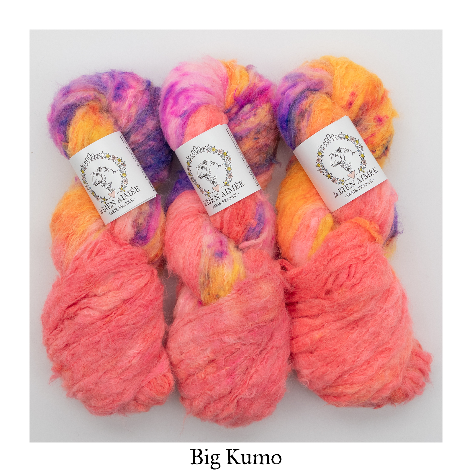 Big Kumo: 73% Baby Suri, 20% 20.5 Mic Merino, 7% Silk, 160m (174yds) for 100g.
