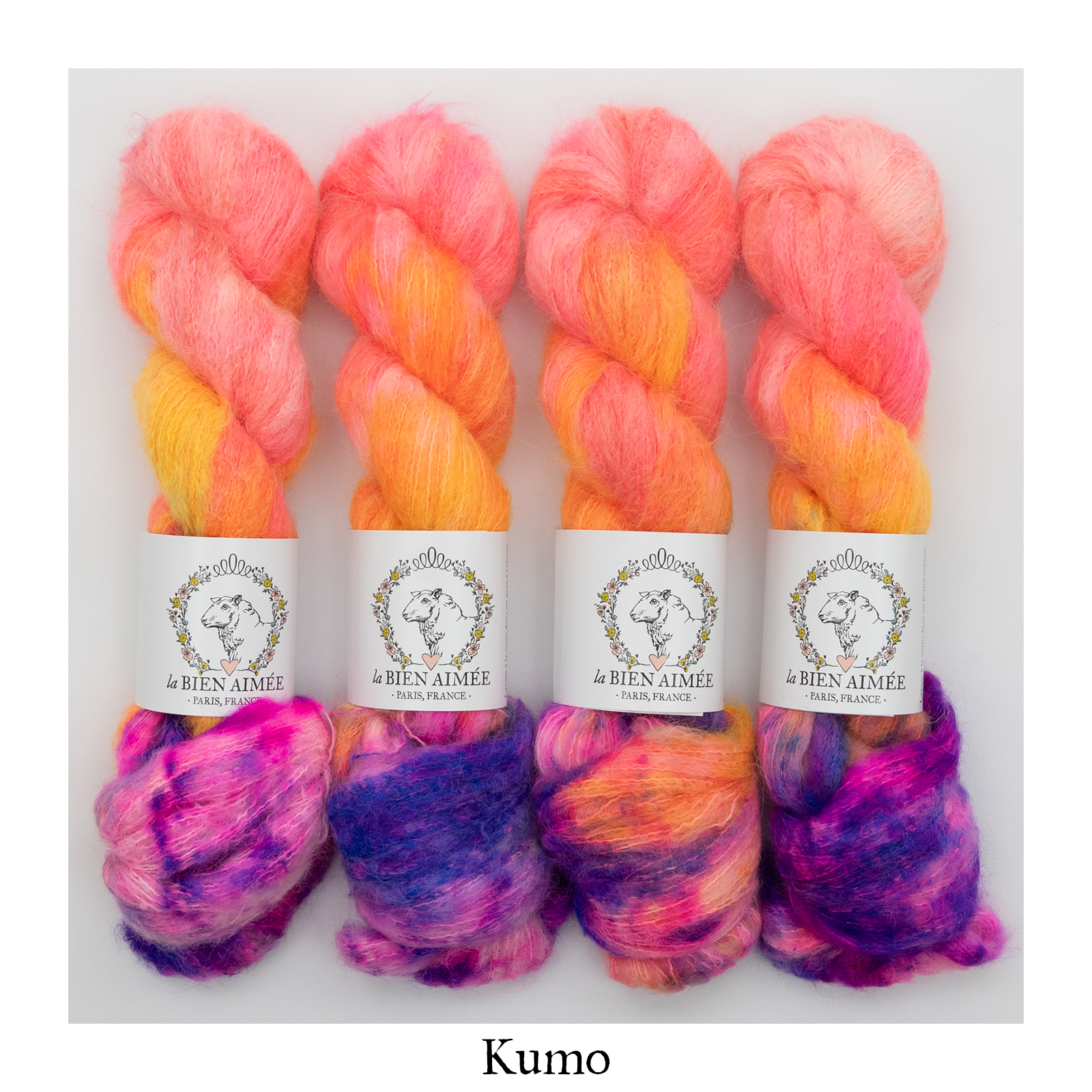 Kumo: 74% suri alpaca & 26% mulberry silk, 300m (328yds) for 50g.
