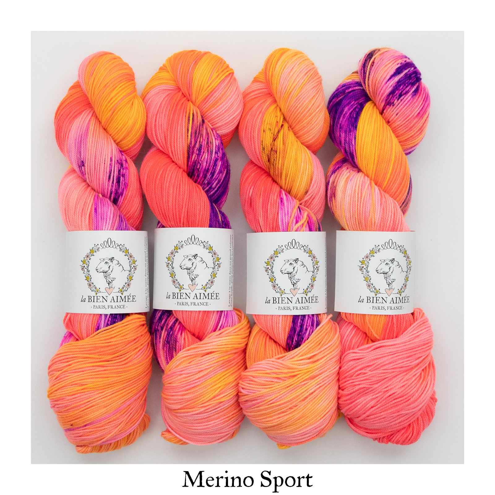 Merino Sport: 100% Superwash Merino, 325m (355 yds) for 100g.