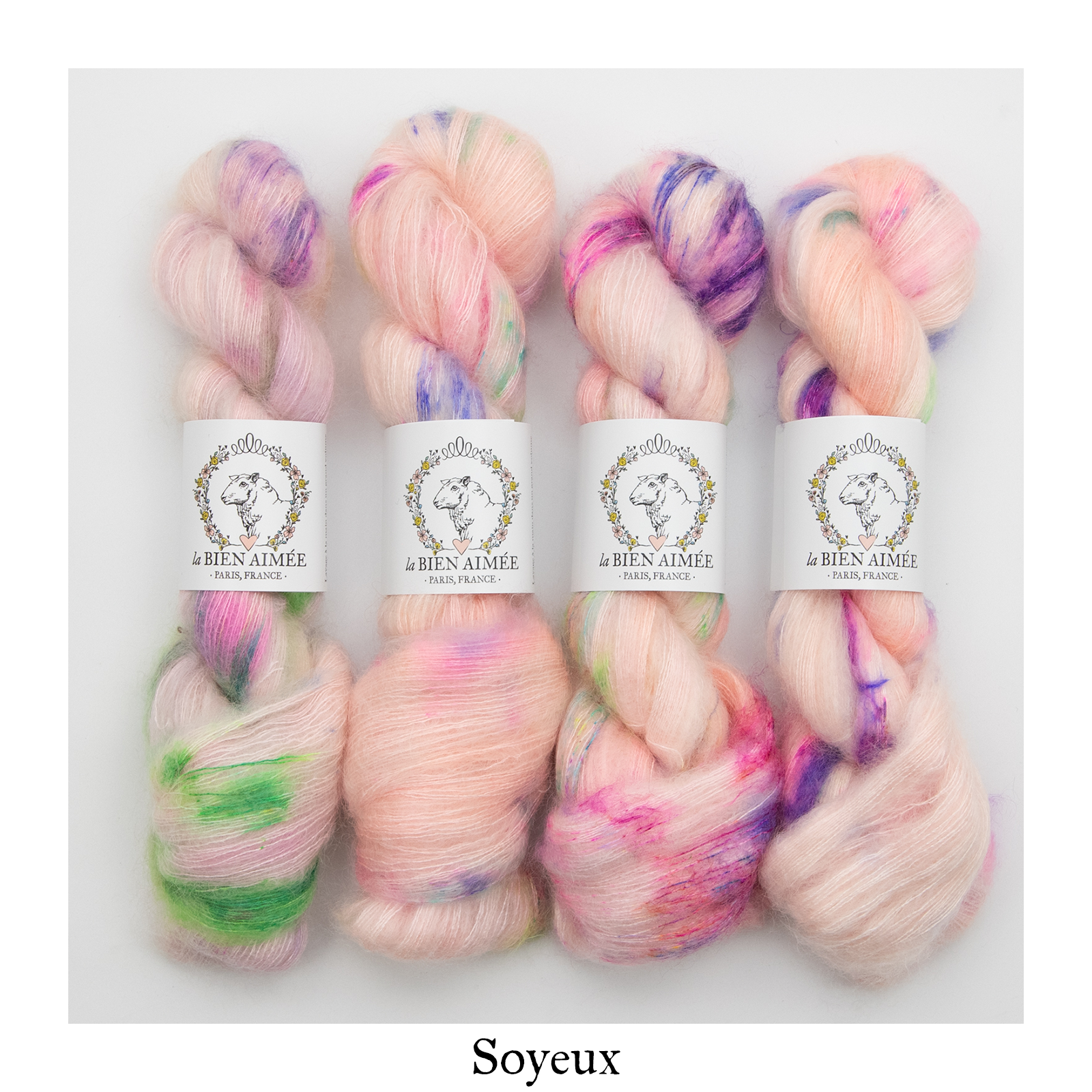 Soyeux: 64% Kid Mohair, 36% Silk, 420m (459yds) for 50g.