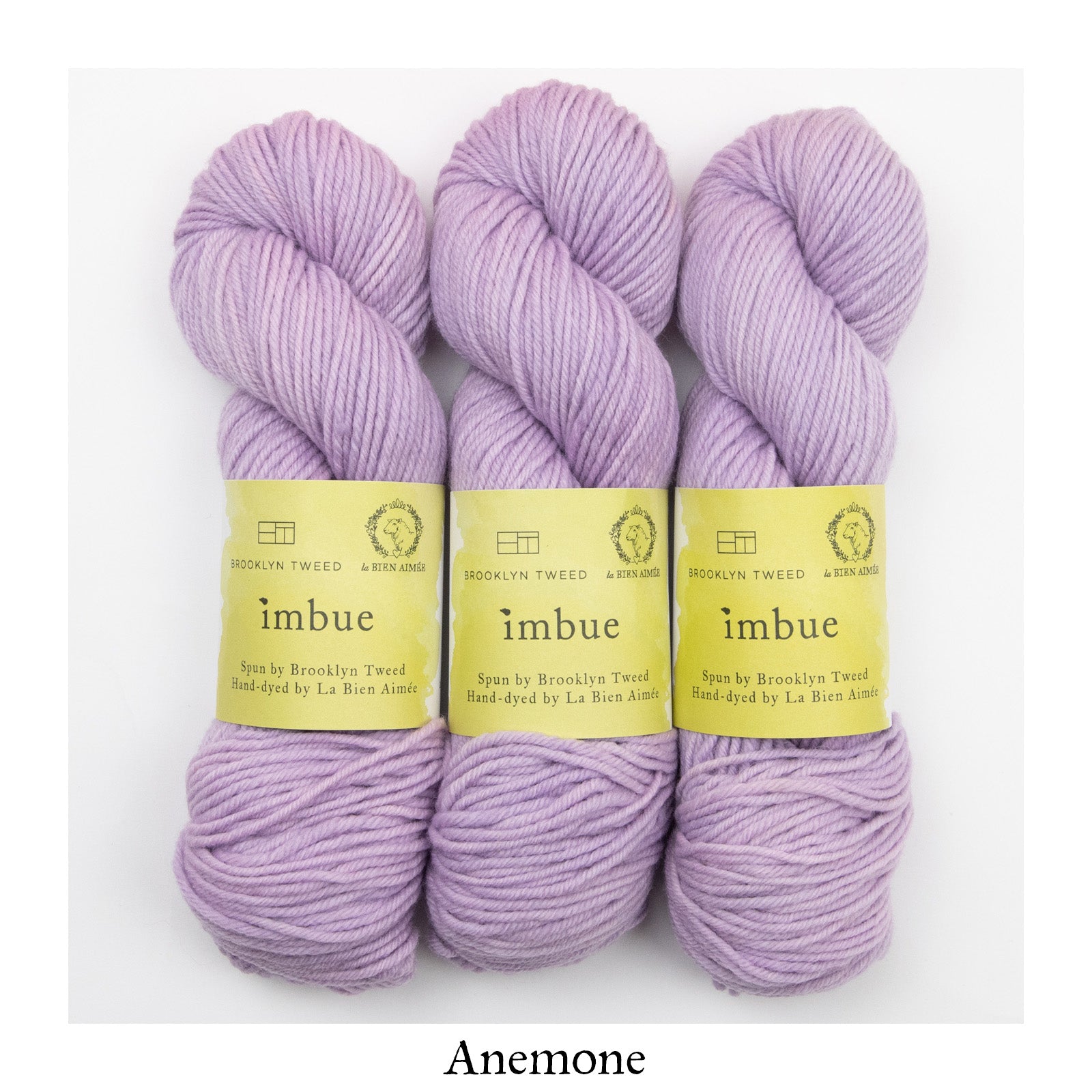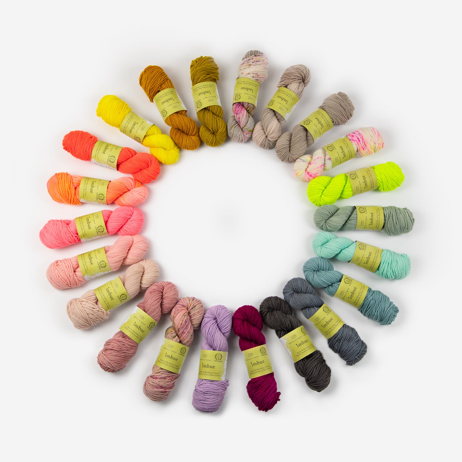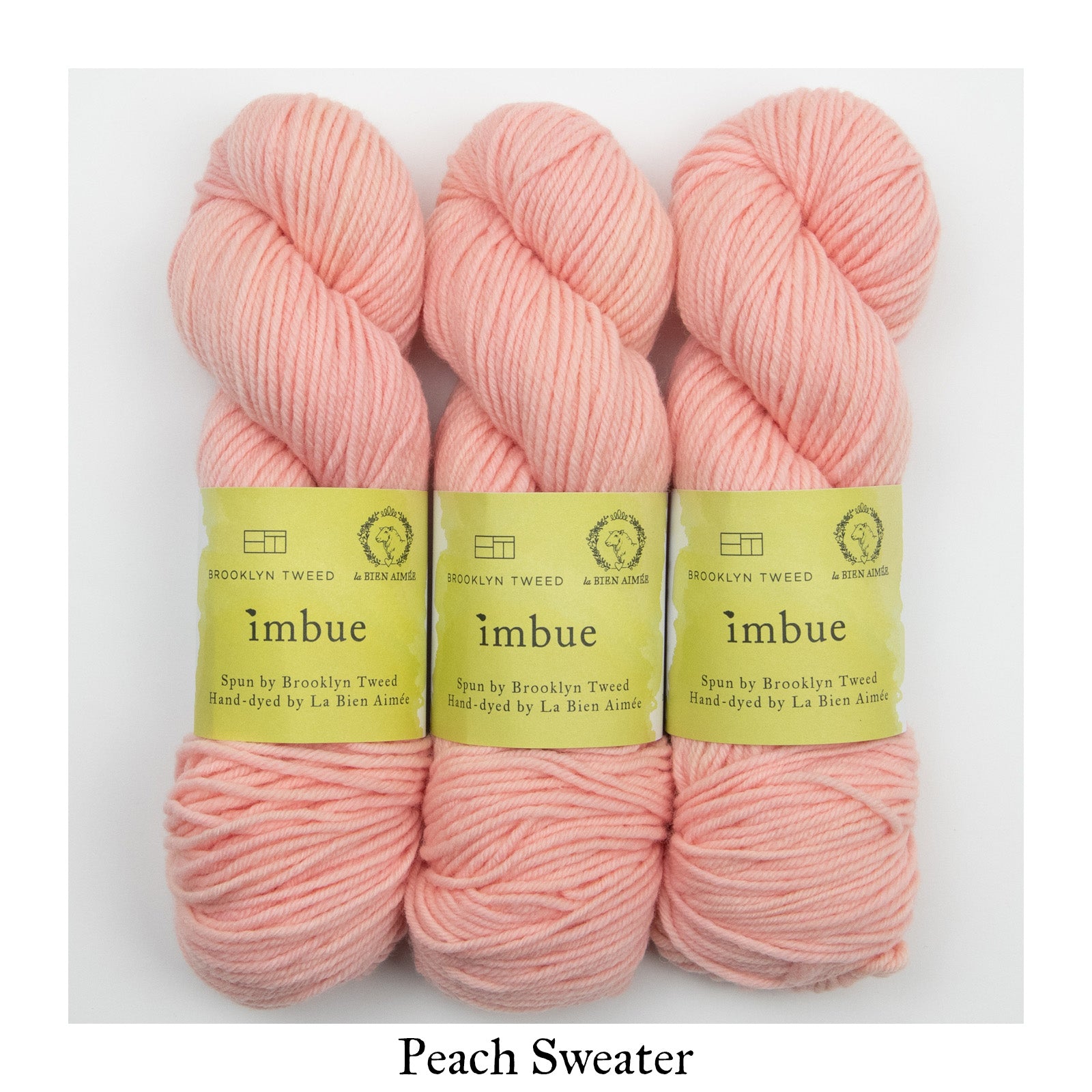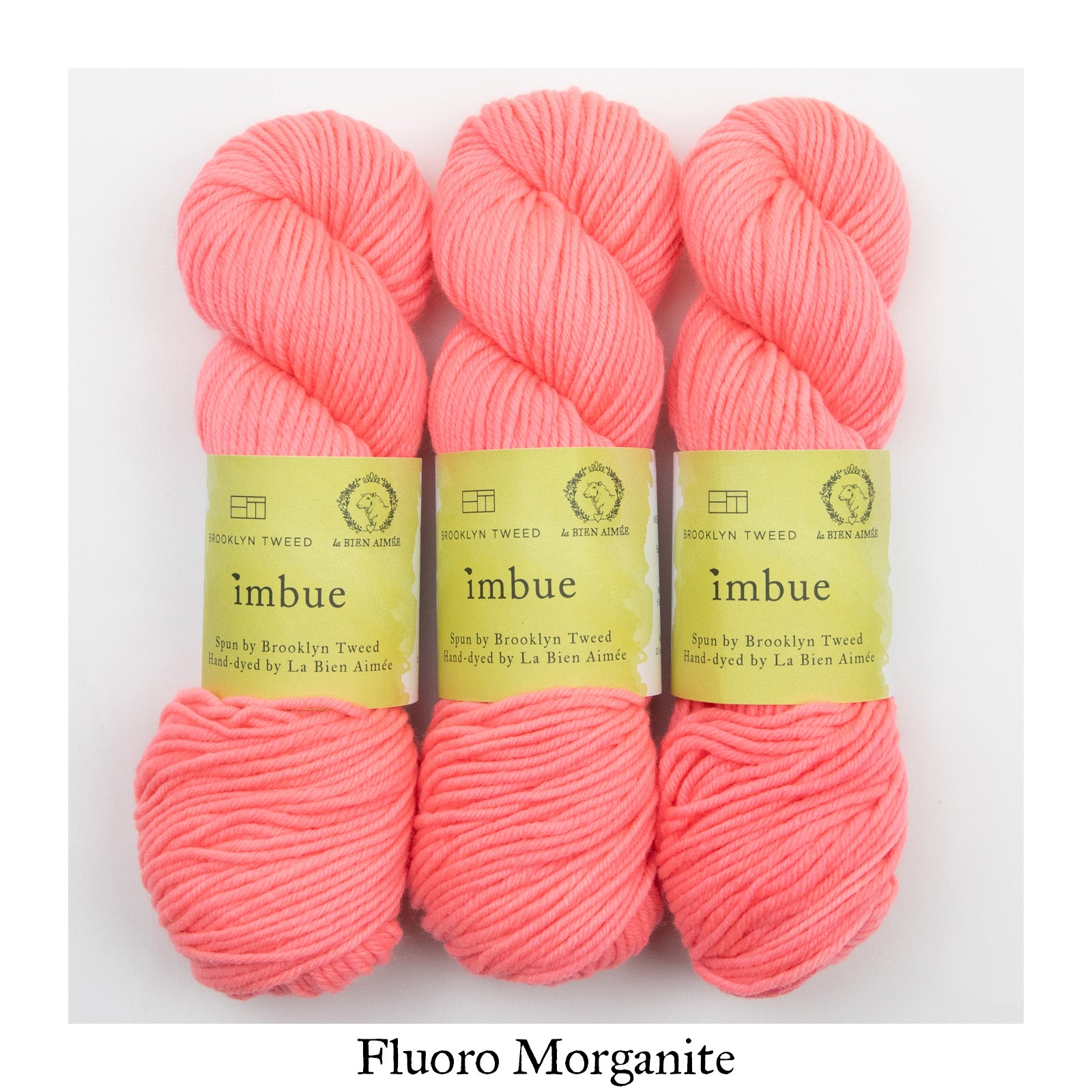 La Bien Aimée Imbue is available as a dye-to-order. You will find a curated selection of 23 LBA colors, all chosen carefully to complement BT’s palette and highlight the beautiful construction of this yarn. They include some of our signature colors in bright neons, delicate neutrals and rich jewel tones.