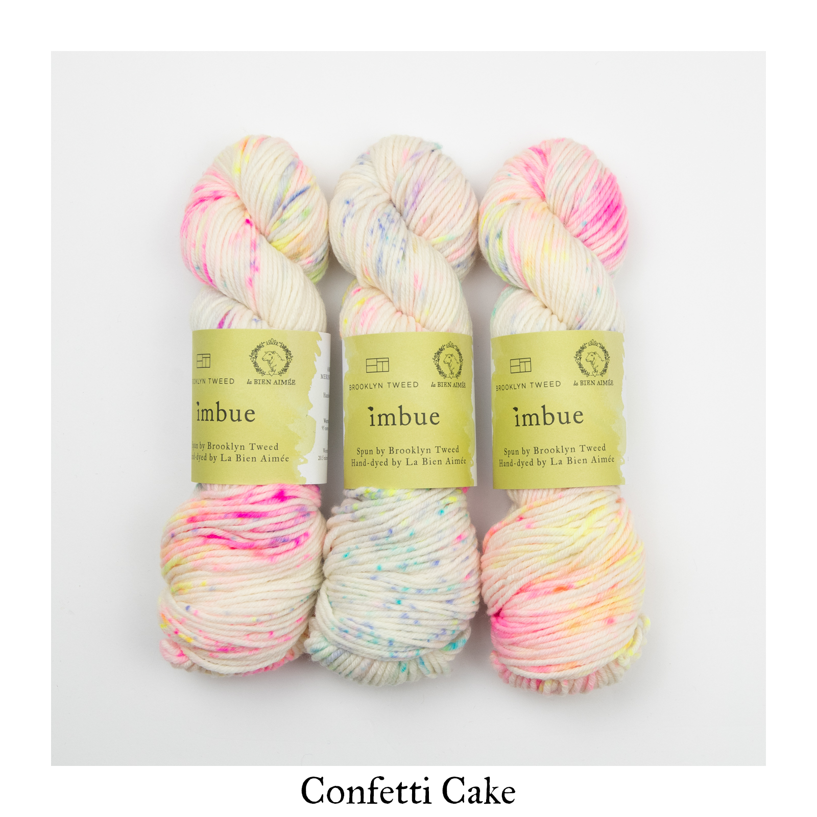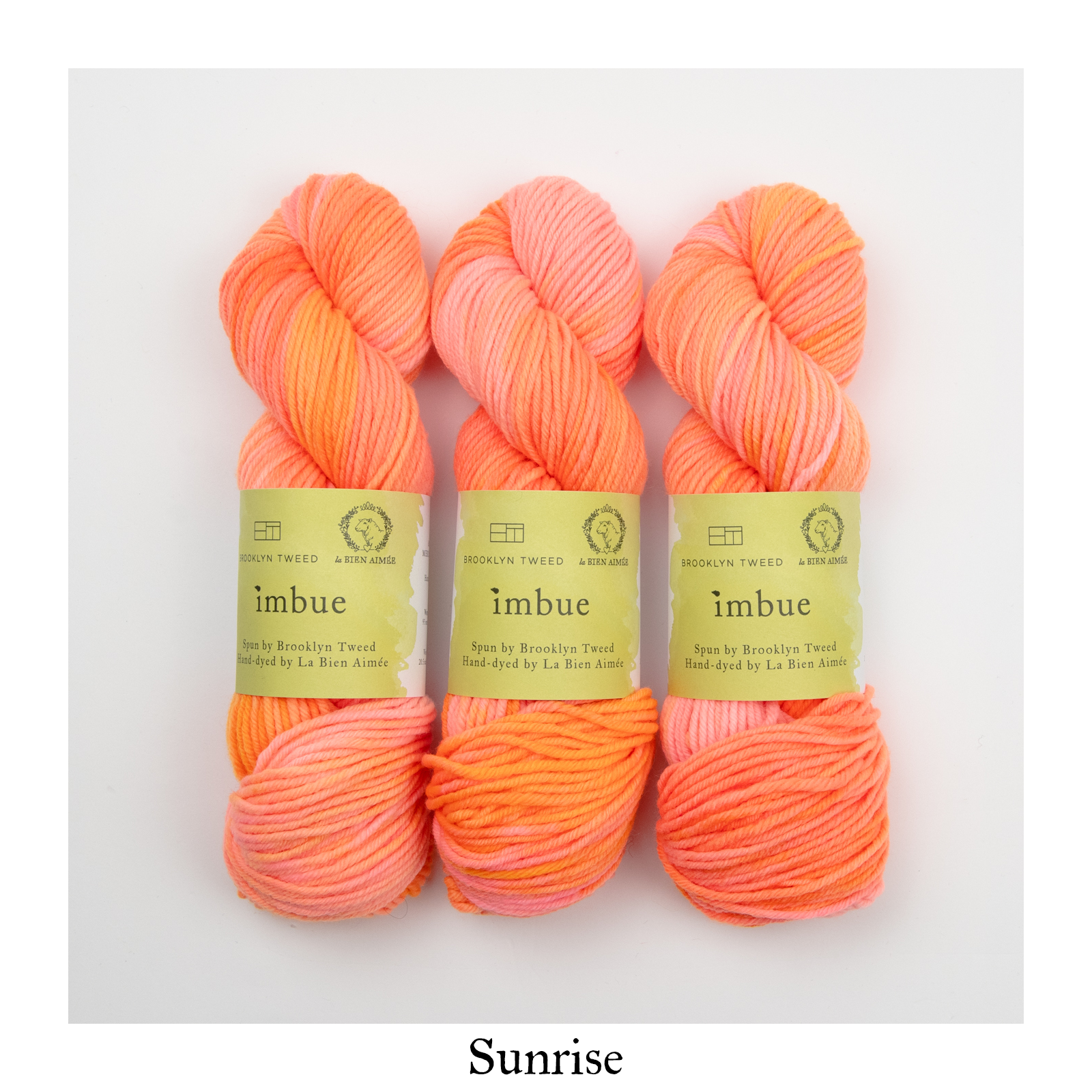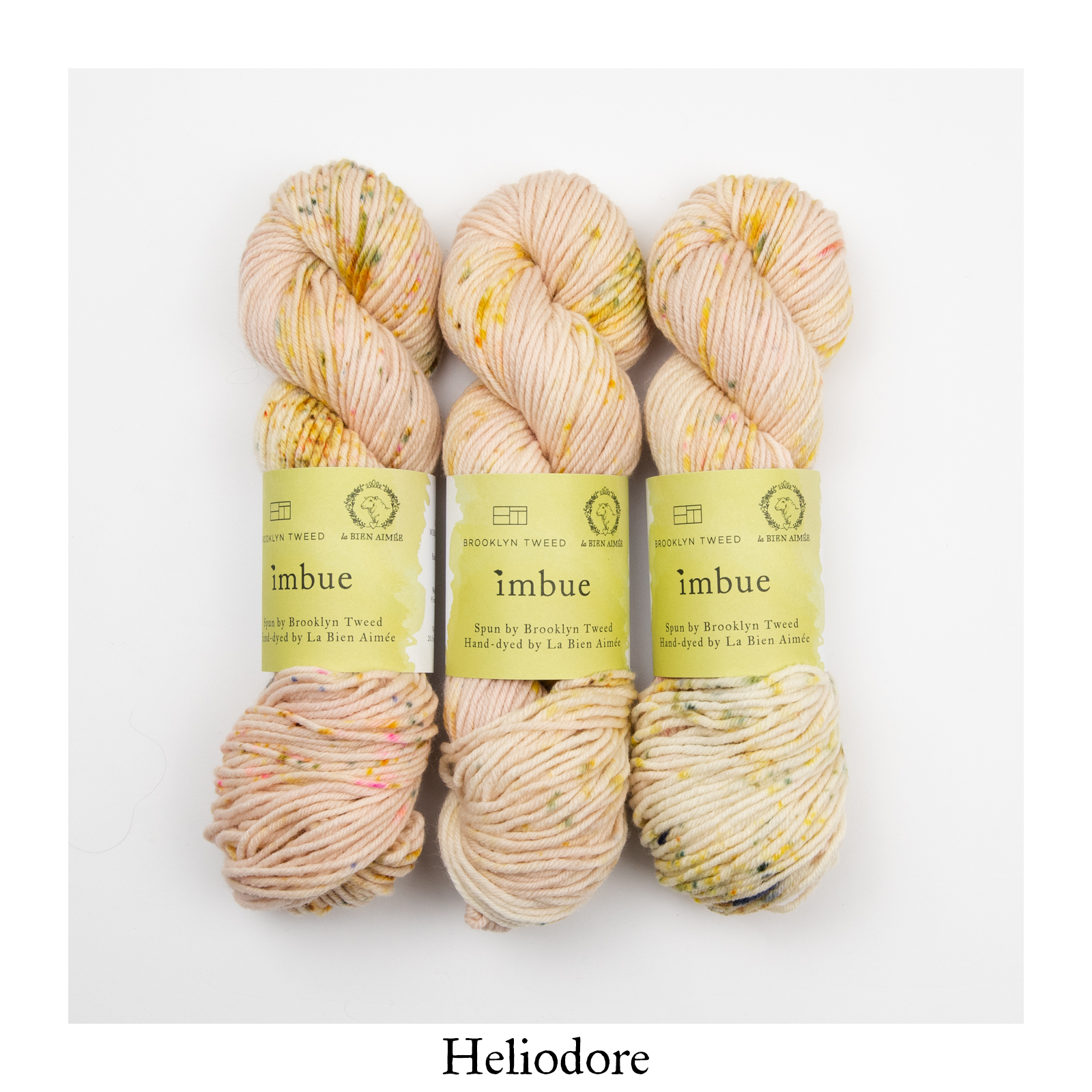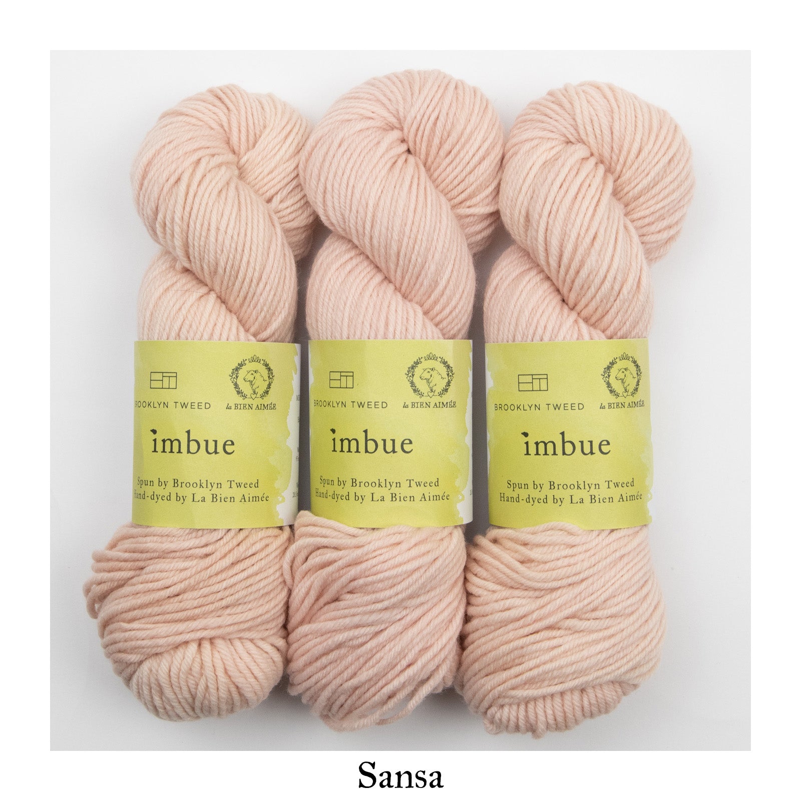 La Bien Aimée Imbue is available as a dye-to-order. You will find a curated selection of 23 LBA colors, all chosen carefully to complement BT’s palette and highlight the beautiful construction of this yarn. They include some of our signature colors in bright neons, delicate neutrals and rich jewel tones.