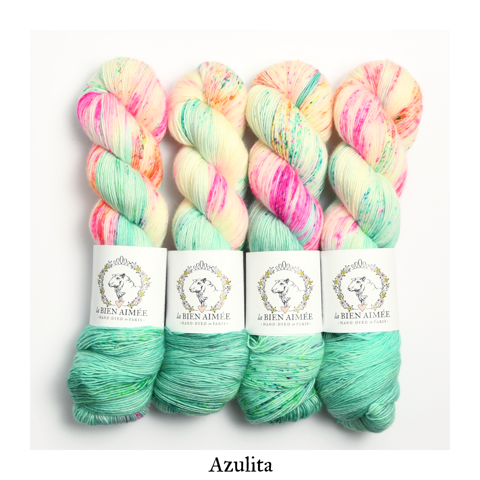 La Bien Aimée Merino Singles is a soft single-ply superwash merino with a beautiful twist. This yarn takes color beautifully and has a crisp stitch definition.