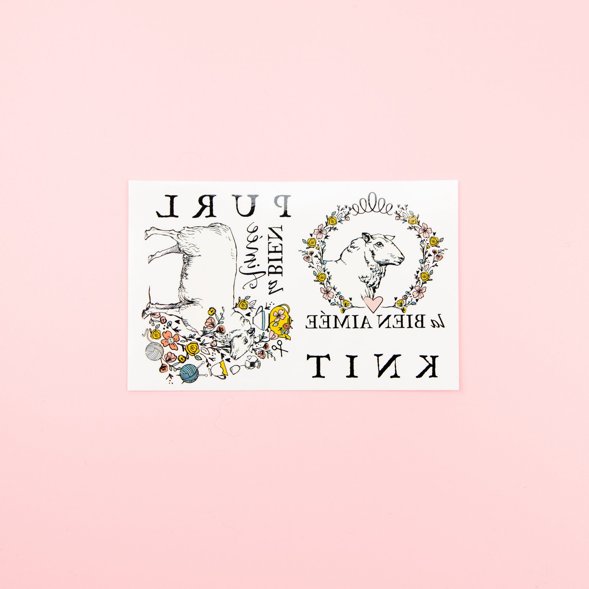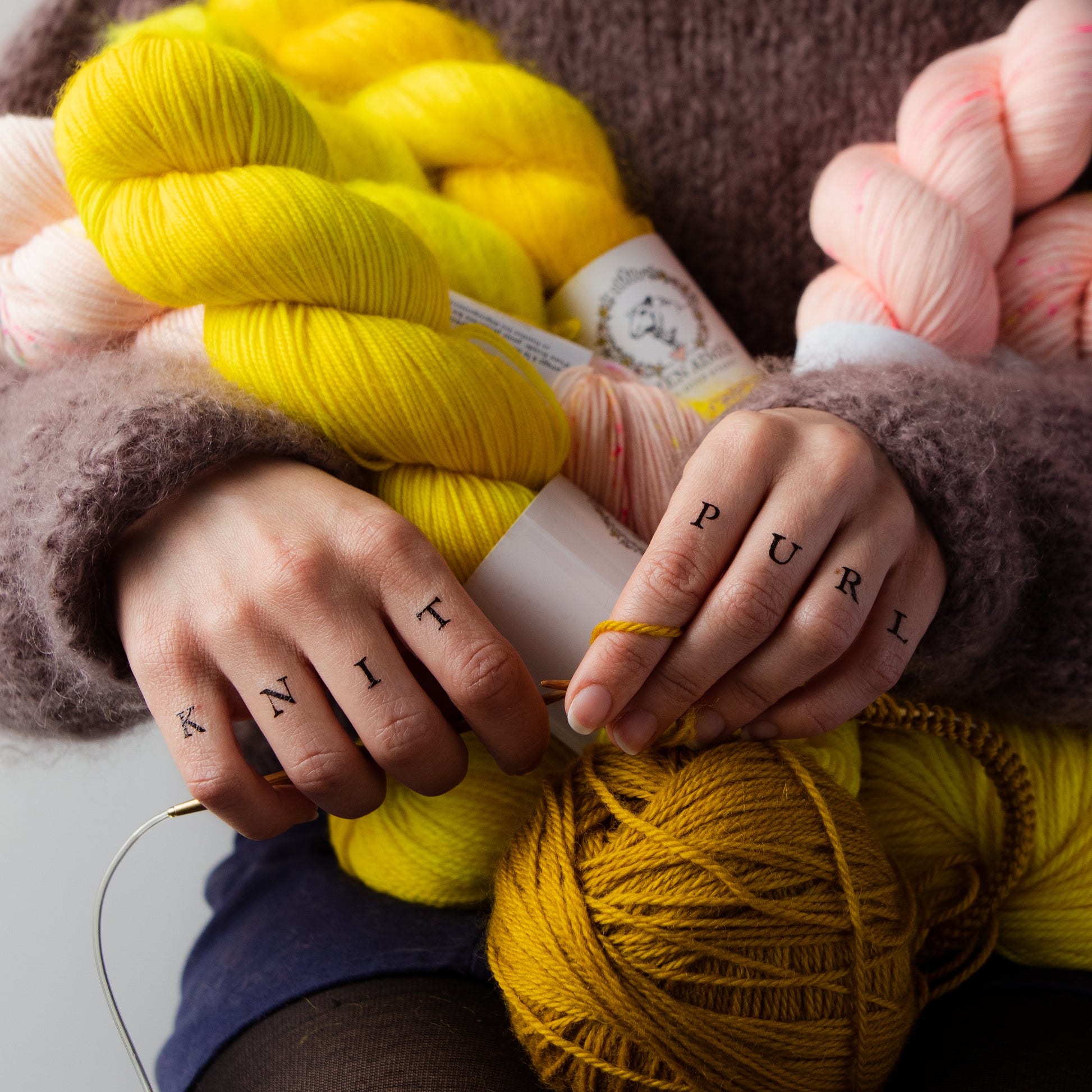 One sheet gives you LBA’s two iconic logos, as well as the letters to KNIT and PURL for your knuckles!