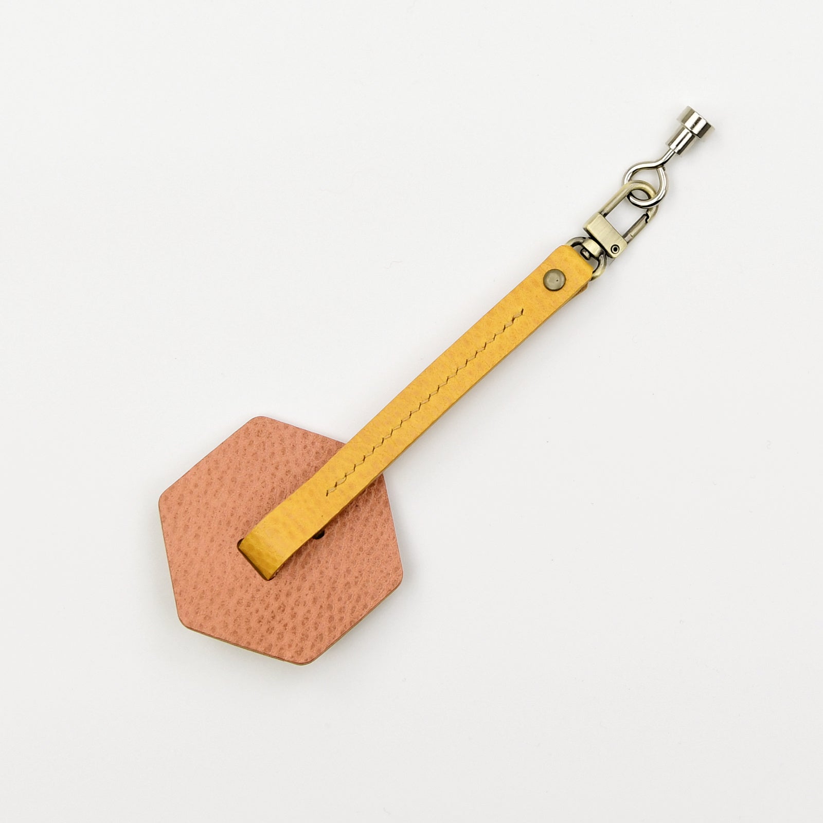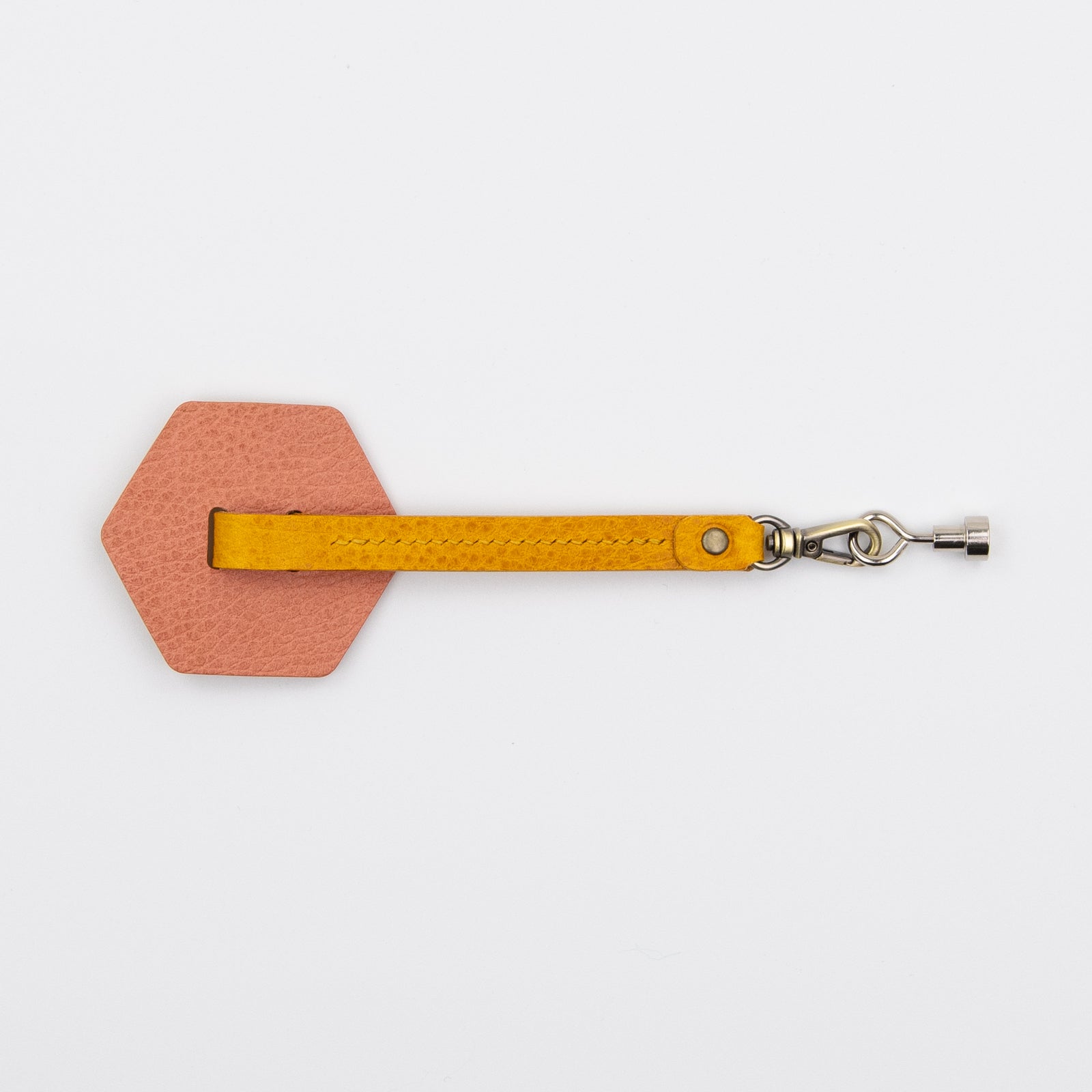 The base is in the shape of a honeycomb, then you thread the shaft into the middle of your yarn cake. A snap hook at the top will help you carry the yarn holder on your bag, on a wristlet or hang it from whatever object you would like. A small magnet attachment at the top will also help you to simply attach the yarn holder to a table or any metal shelf or object near you.