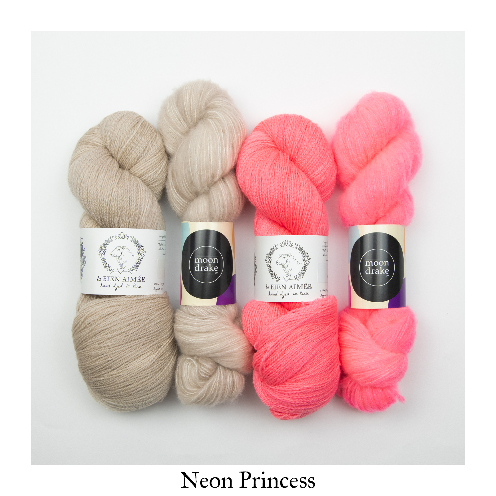 All Over Intarsia - Original: 1x Helix mini 25g of each: French Grey, Peach Sweater, Buzz, Seaglass, Anemone and 1x Felix mini 25g of each: "AS IF", Fluoro Morganite, "HELLA", Buzz, Seaglass, Anemone.