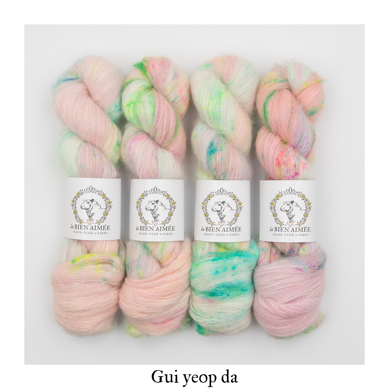 Little Kumo is made of the same super soft Suri Alpaca, and it is just as fluffy! Made of 65% Baby Suri Alpaca and 35% Silk, Little Kumo is a true lace-weight yarn. It can be substituted to any standard silk mohair yarn. It is light and fluffy, perfect to be held double with any of our other yarns, just like you love to do with our Mohair Silk.