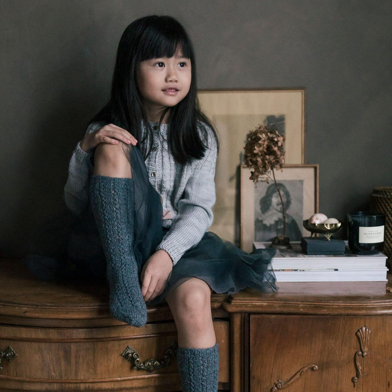 This book features the cardigan Florentina in our Merino DK colorway Smoke.