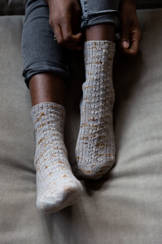 Issue 5 explores the hidden qualities of plants and nature to shed a light on the essential role they have for us and the planet. Heidi Reszies designed a beautiful sock pattern, Cacti, in our very own La Bien Aimée Mondim base in the Driftwood Graffiti colorway.