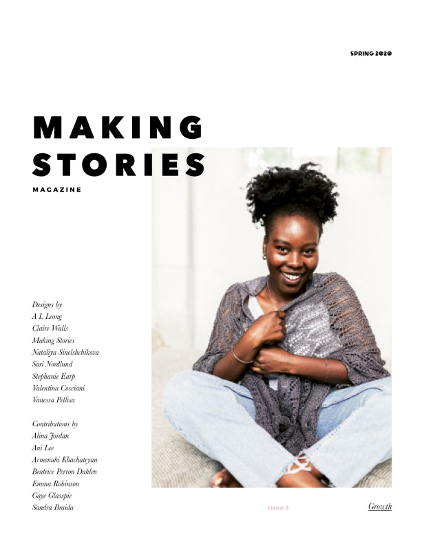 Issue 3 explores the topic of Growth with patterns that reflect this inspiration both in their stitch patterns and construction.
