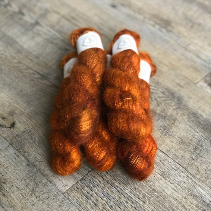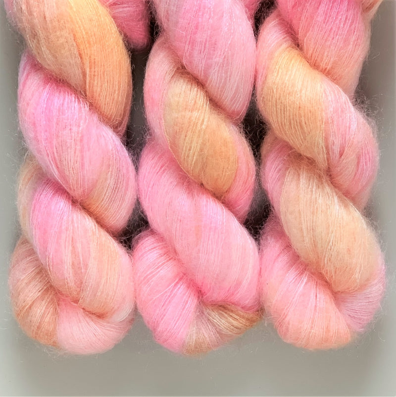 | 70% Mohair, 30% Soie du Mûrier Environ 500 mètres (546 yards) par écheveau de 50g. Aiguilles : 3-5mm Fil dentelle. Le lavage à la main est préconisé. |