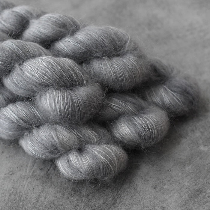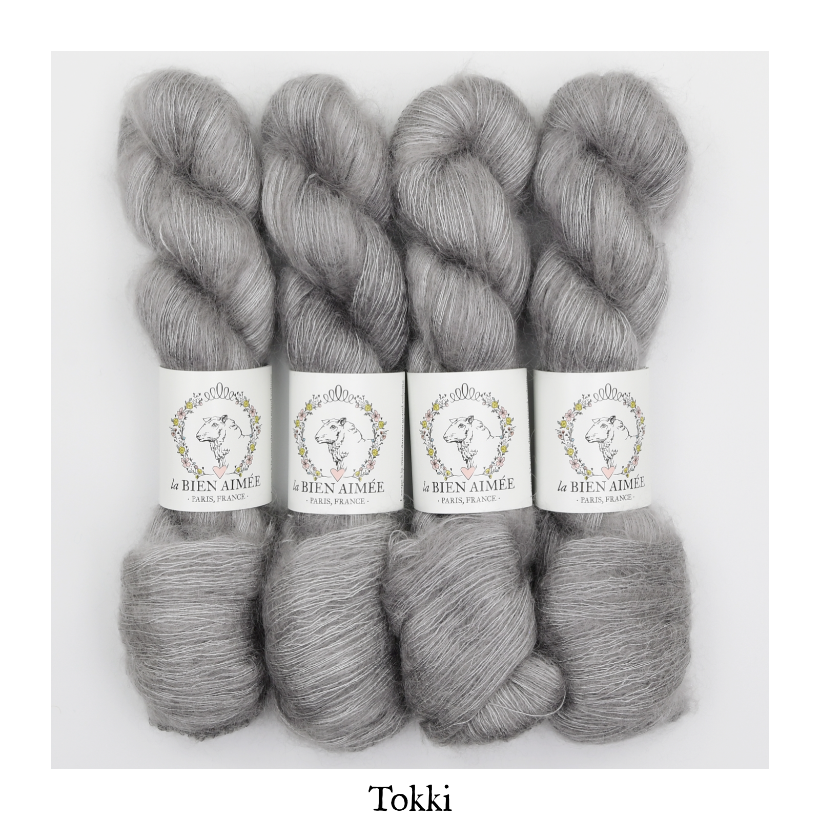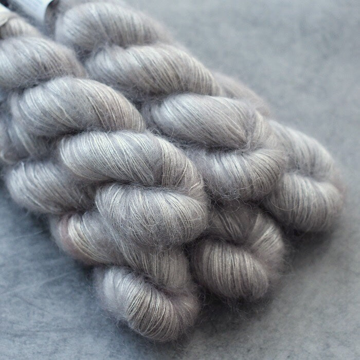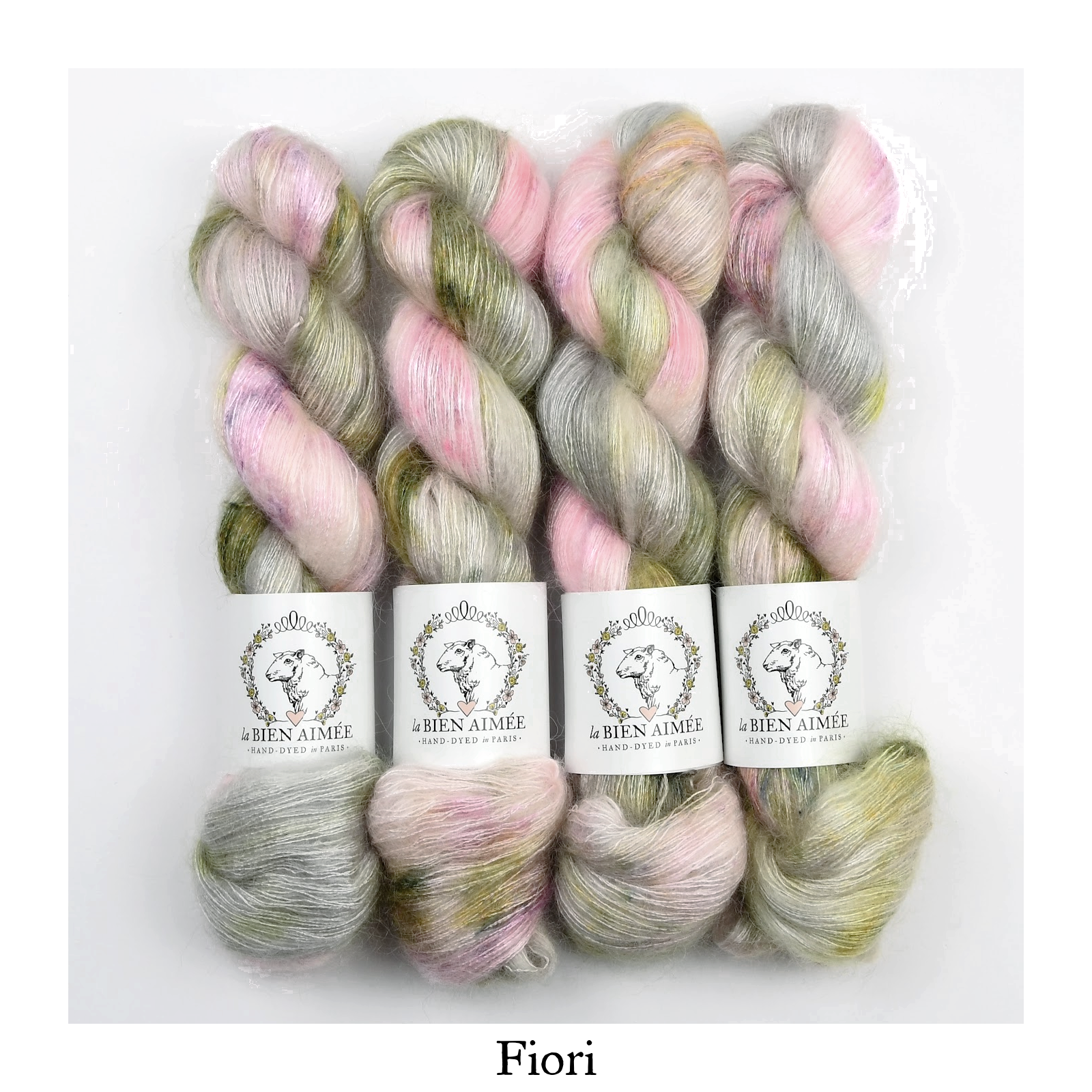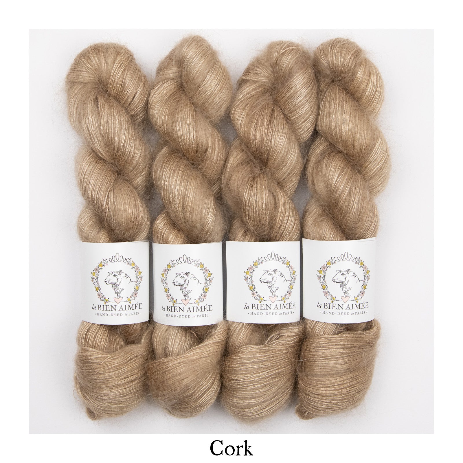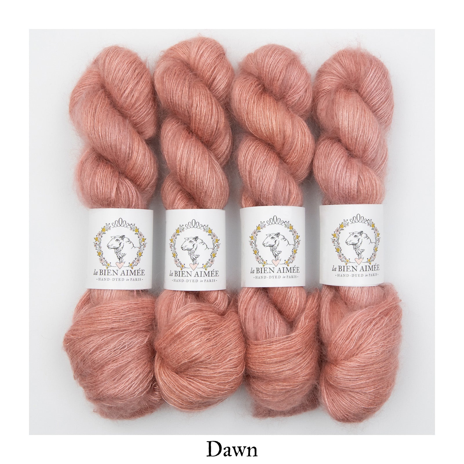 La Bien Aimée Mohair Silk is a soft and luxurious blend of mohair and Mulberry silk. A lace weight with almost 550 yards, it adds a lovely halo to any garment or accessory, while staying light and warm at the same time. It is perfect mixed with our other merino bases, such as Singles, in Elton by Joji Locatelli, or Love Note by Tin Can Knits, or held together with Helix, like in Jennifer Steingass' Meadow Moon or Veera Valimaki's Old School sweater.
