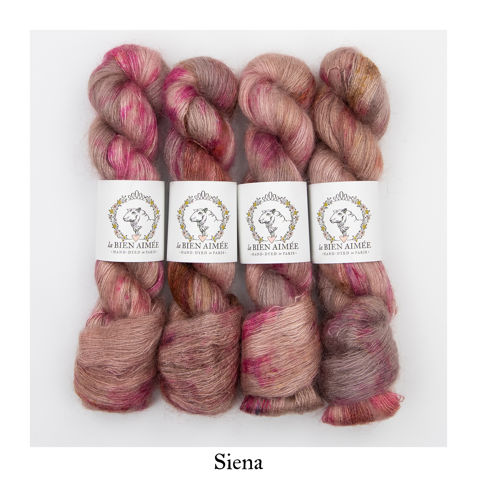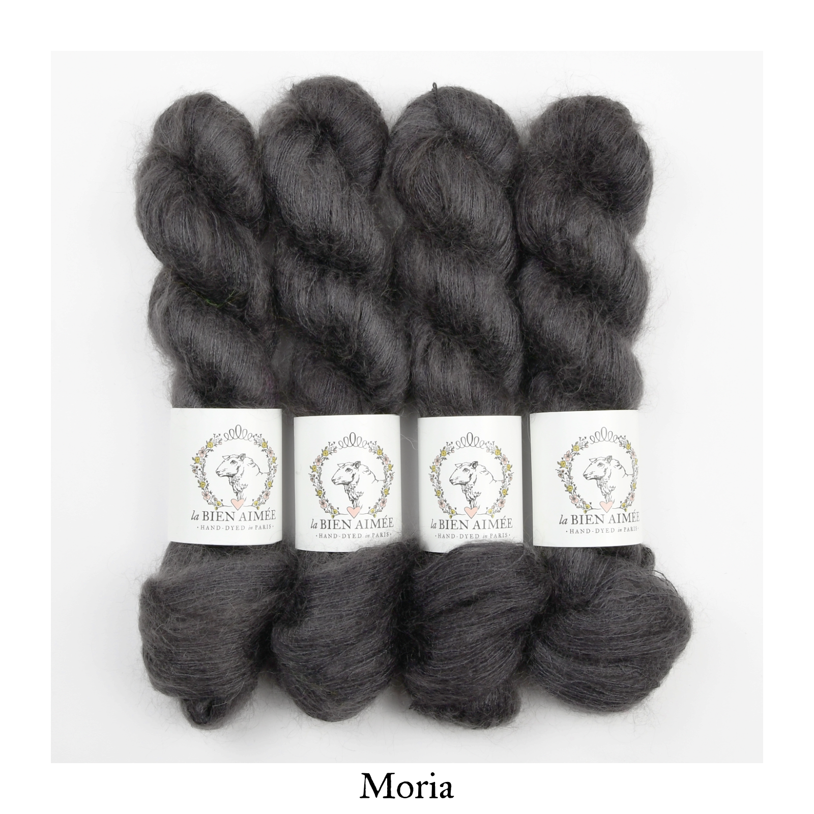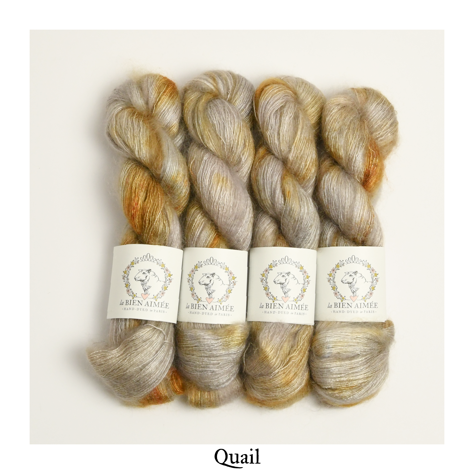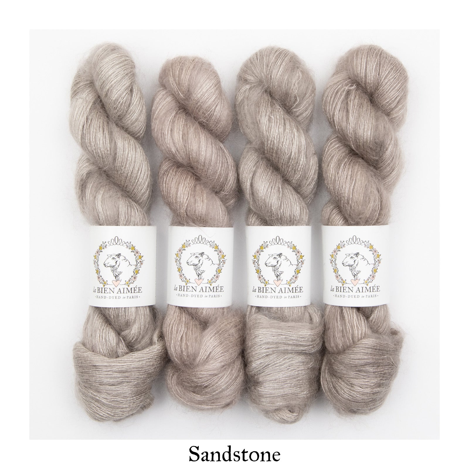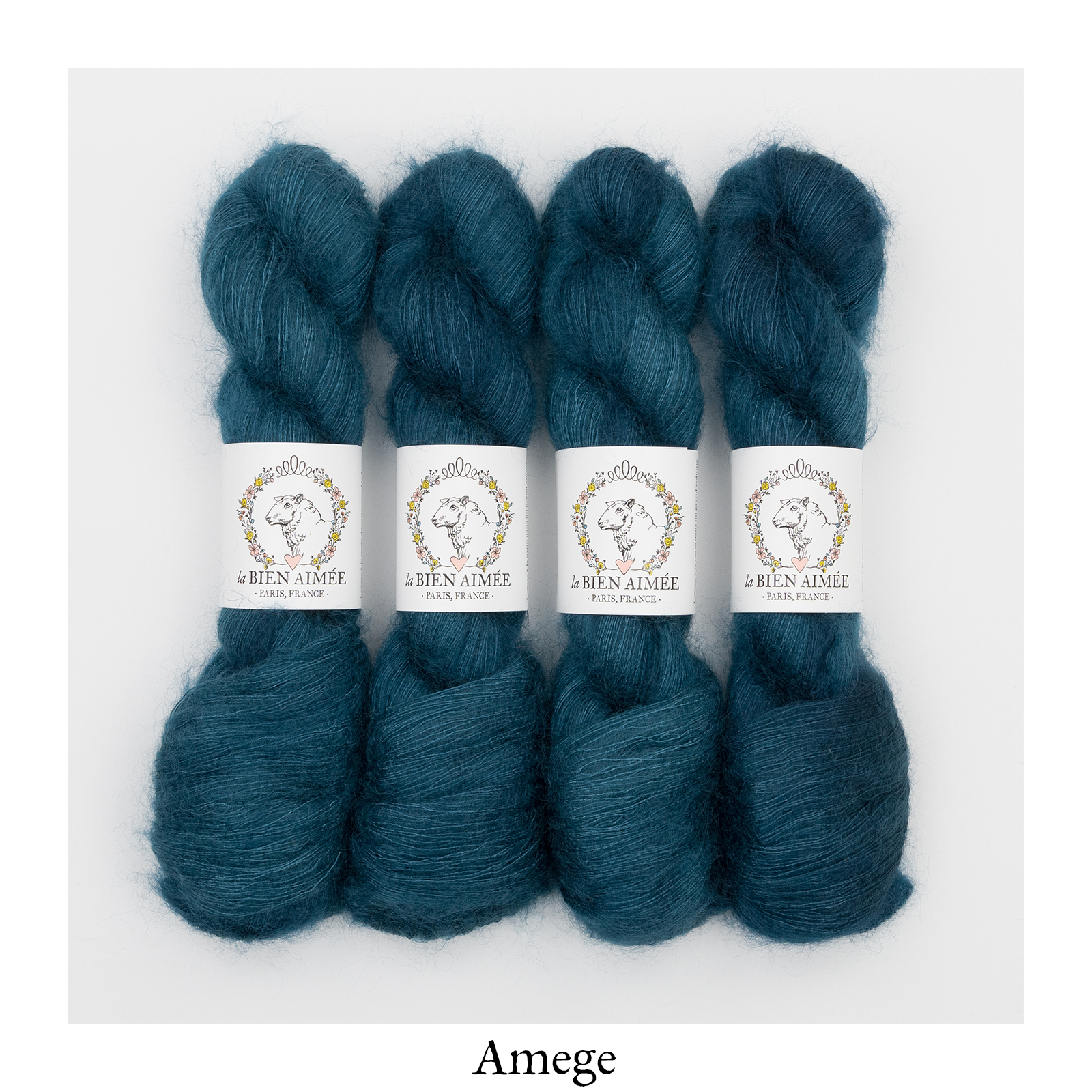 La Bien Aimée Mohair Silk is a soft and luxurious blend of mohair and Mulberry silk. A lace weight with almost 550 yards, it adds a lovely halo to any garment or accessory, while staying light and warm at the same time. It is perfect mixed with our other merino bases, such as Singles, in Elton by Joji Locatelli, or Love Note by Tin Can Knits, or held together with Helix, like in Jennifer Steingass' Meadow Moon or Veera Valimaki's Old School sweater.