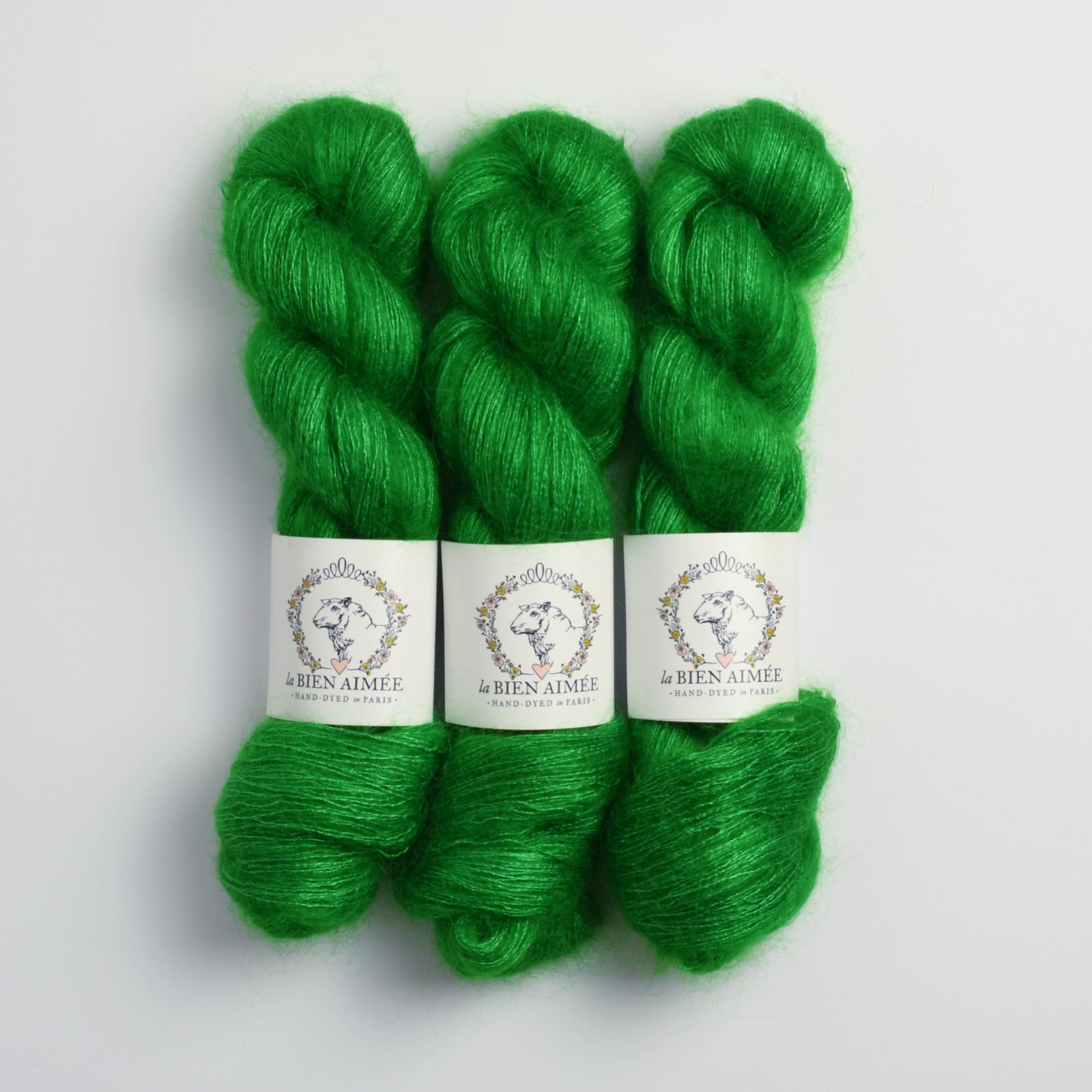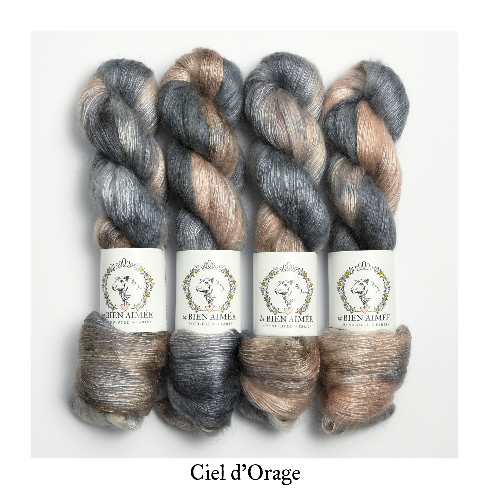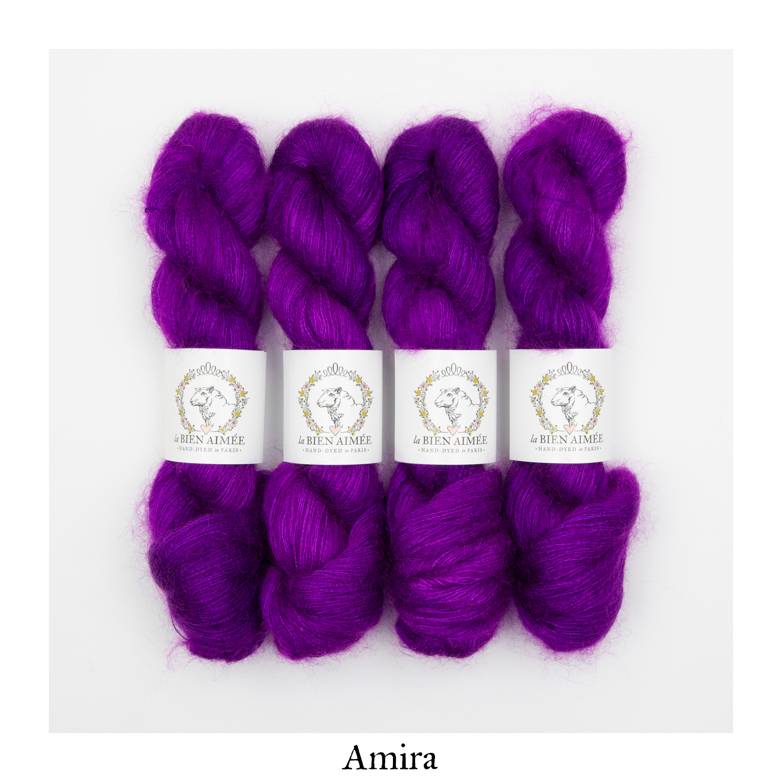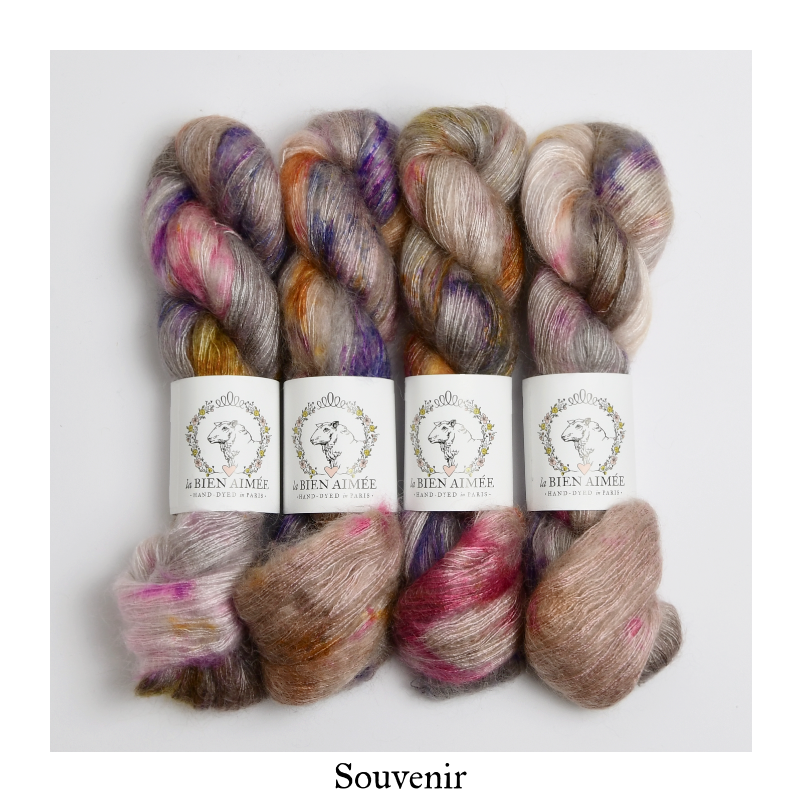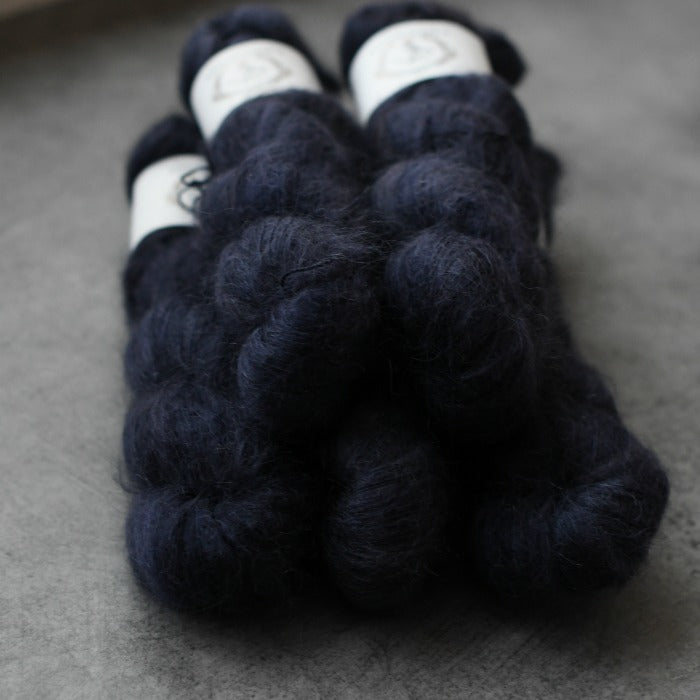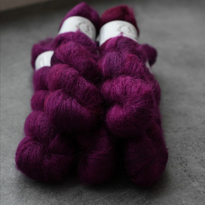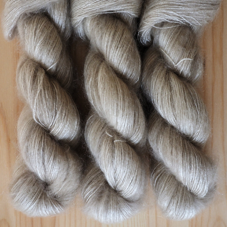La Bien Aimée Mohair Silk is a soft and luxurious blend of mohair and Mulberry silk. A lace weight with almost 550 yards, it adds a lovely halo to any garment or accessory, while staying light and warm at the same time. It is perfect mixed with our other merino bases, such as Singles, in Elton by Joji Locatelli, or Love Note by Tin Can Knits, or held together with Helix, like in Jennifer Steingass' Meadow Moon or Veera Valimaki's Old School sweater.