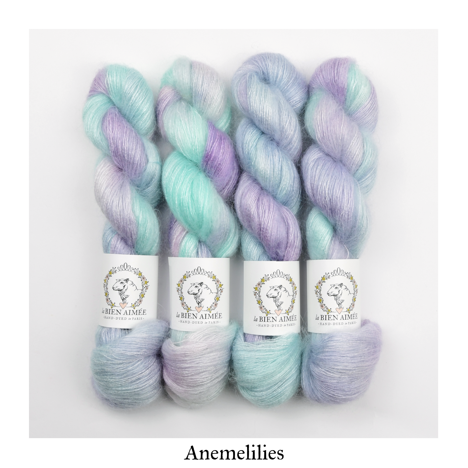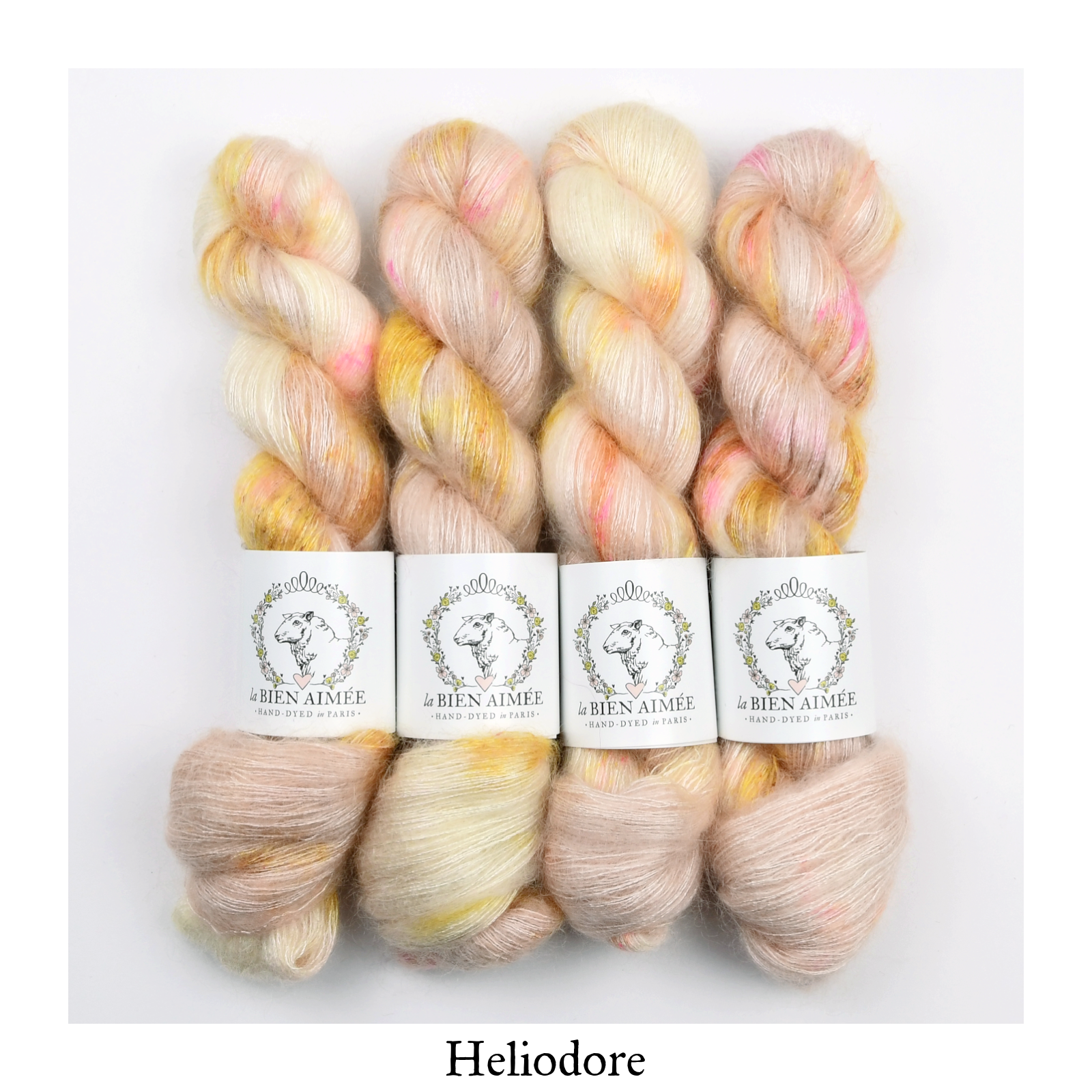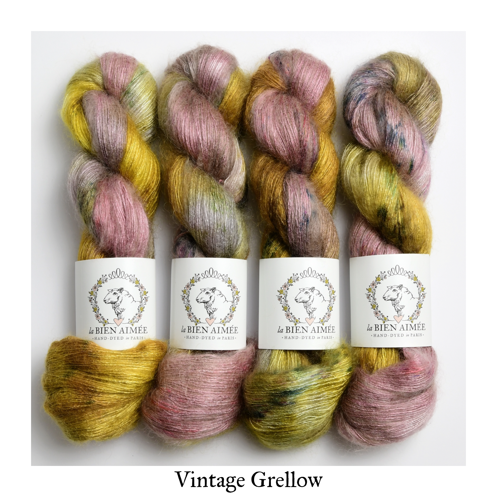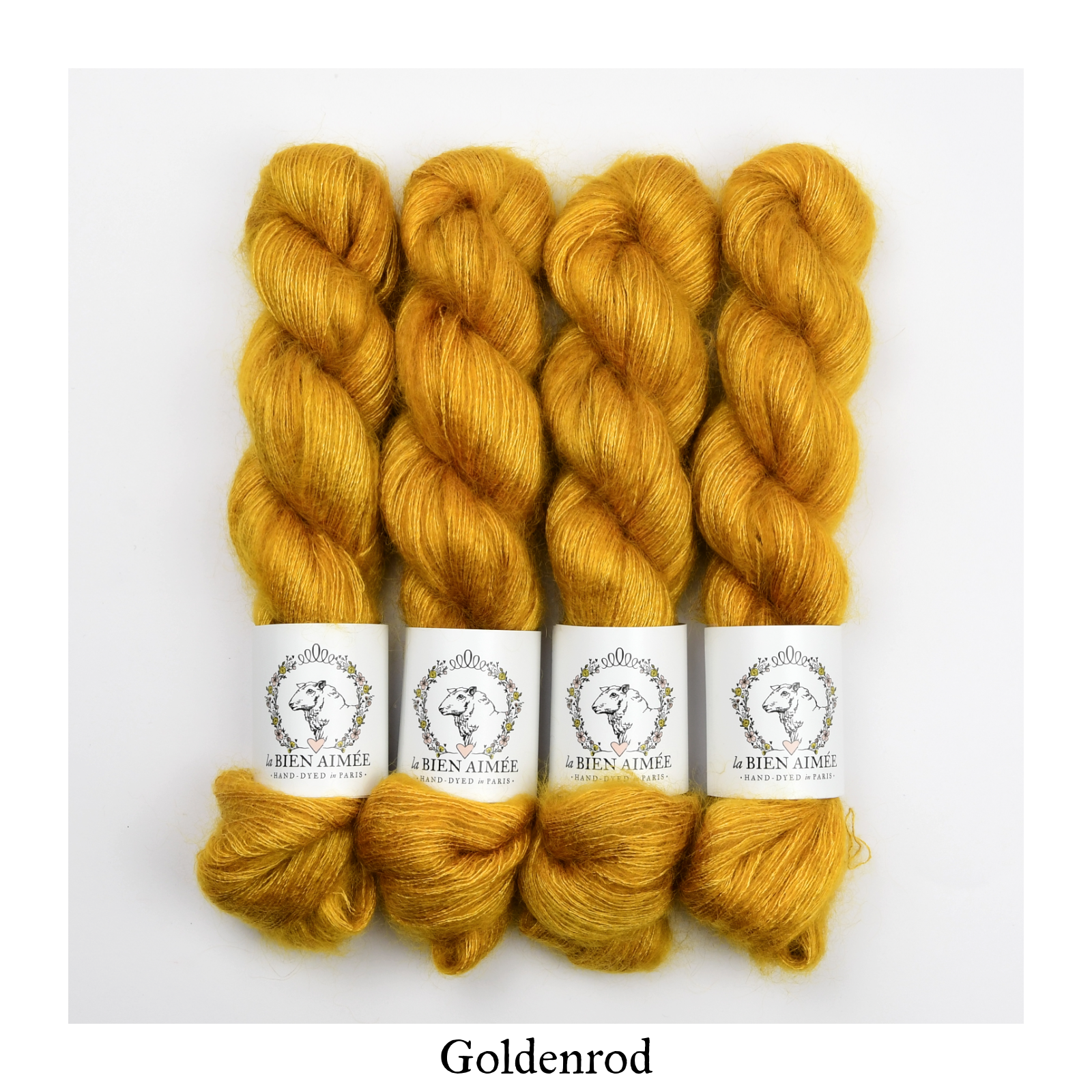 La Bien Aimée Mohair Silk is a soft and luxurious blend of mohair and Mulberry silk. A lace weight with almost 550 yards, it adds a lovely halo to any garment or accessory, while staying light and warm at the same time. It is perfect mixed with our other merino bases, such as Singles, in Elton by Joji Locatelli, or Love Note by Tin Can Knits, or held together with Helix, like in Jennifer Steingass' Meadow Moon or Veera Valimaki's Old School sweater.