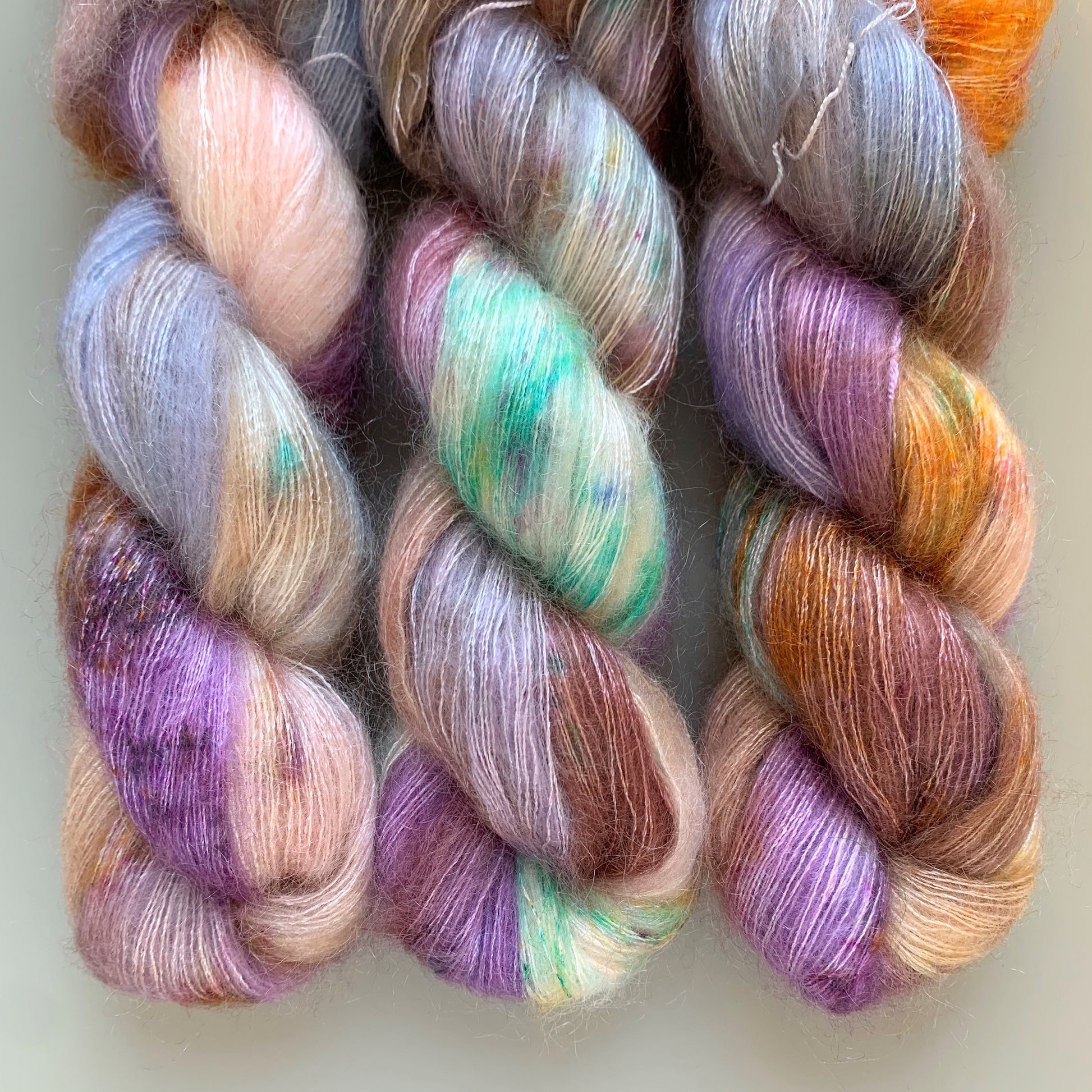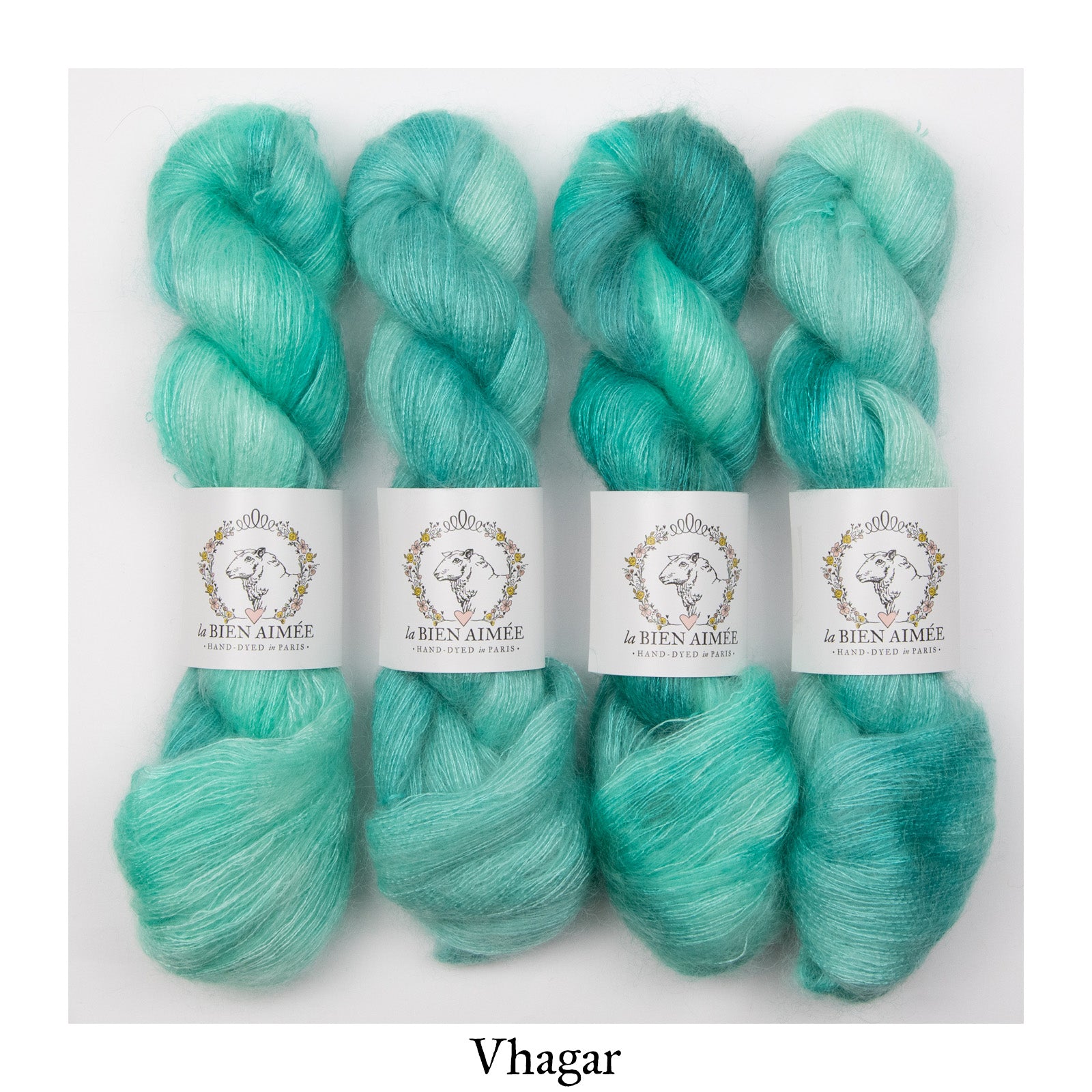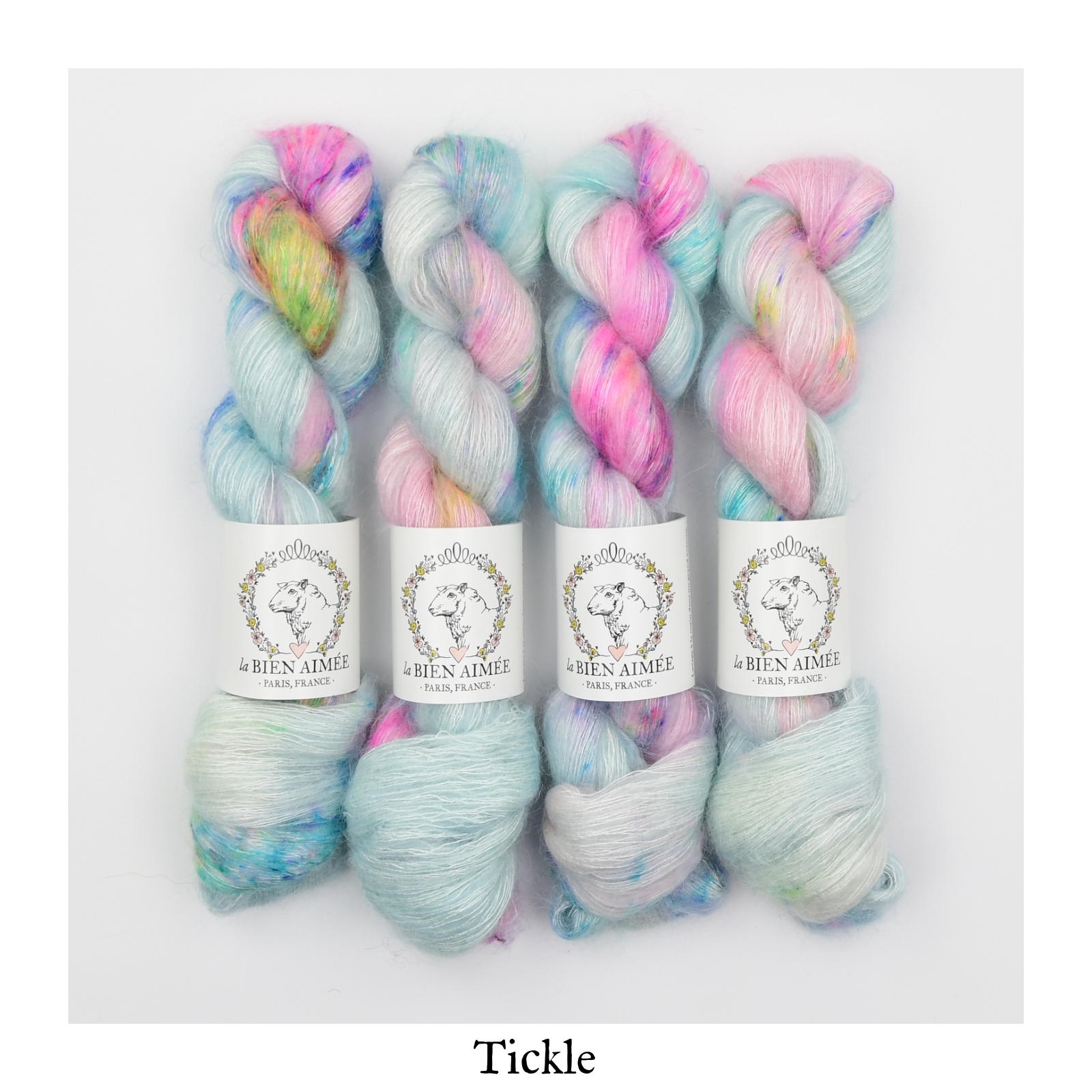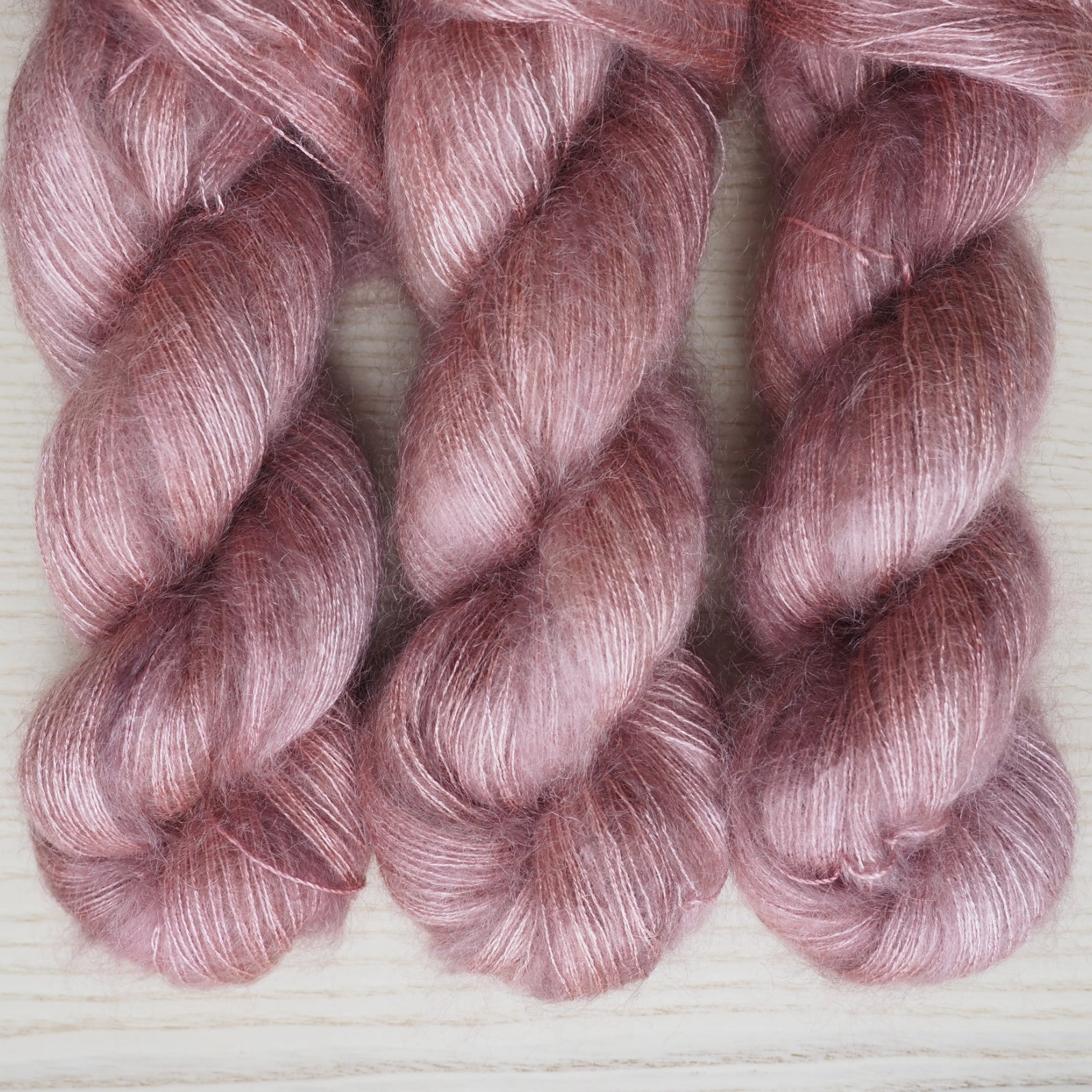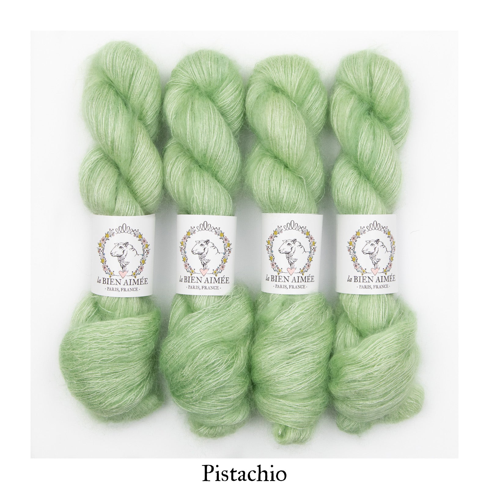 La Bien Aimée Mohair Silk is a soft and luxurious blend of mohair and Mulberry silk. A lace weight with almost 550 yards, it adds a lovely halo to any garment or accessory, while staying light and warm at the same time. It is perfect mixed with our other merino bases, such as Singles, in Elton by Joji Locatelli, or Love Note by Tin Can Knits, or held together with Helix, like in Jennifer Steingass' Meadow Moon or Veera Valimaki's Old School sweater.