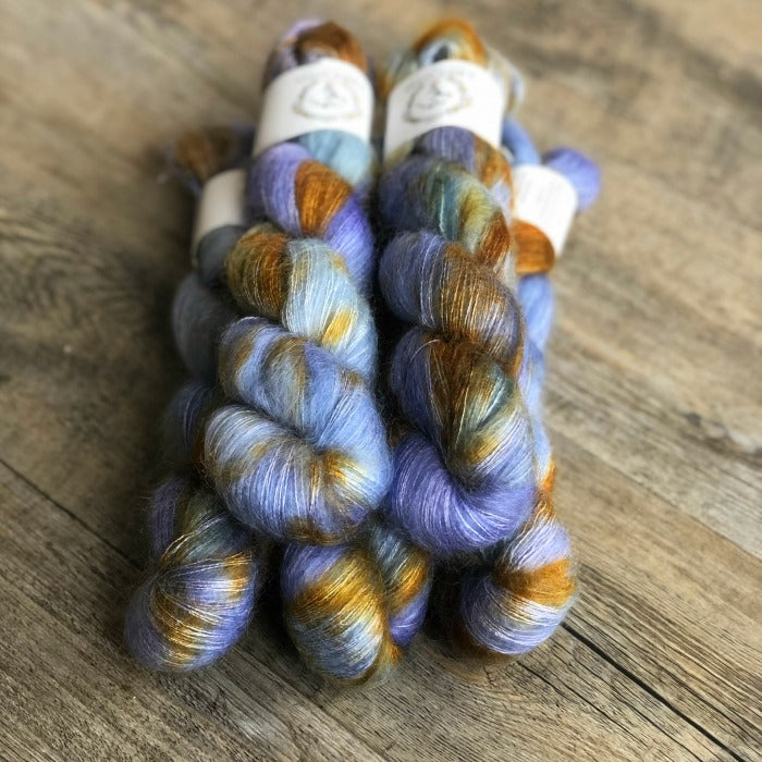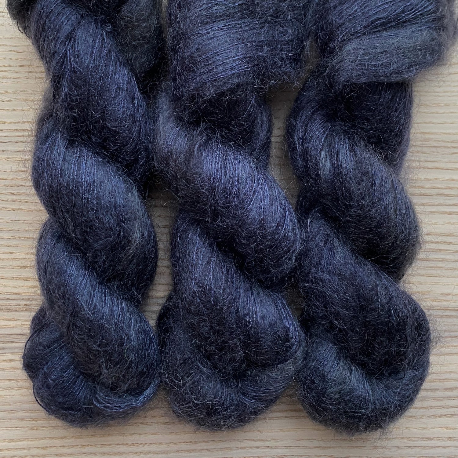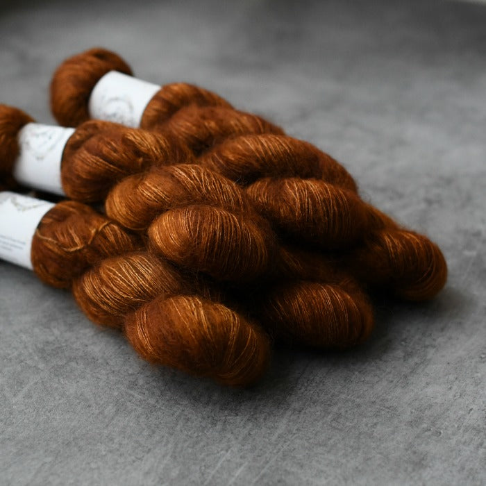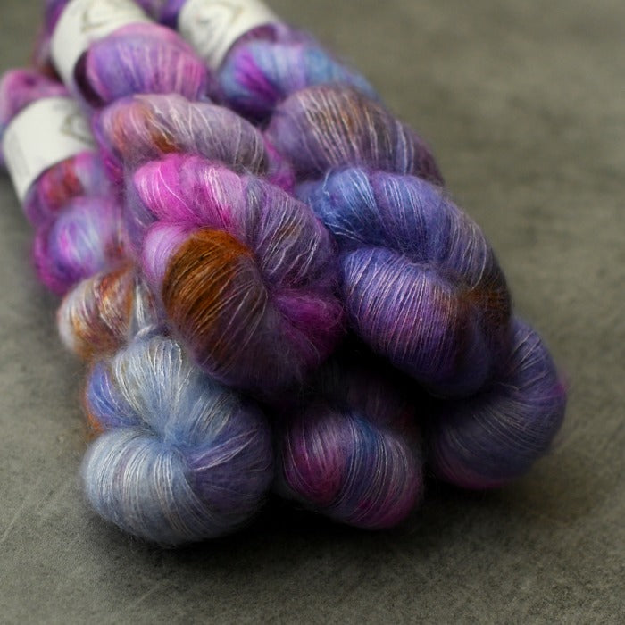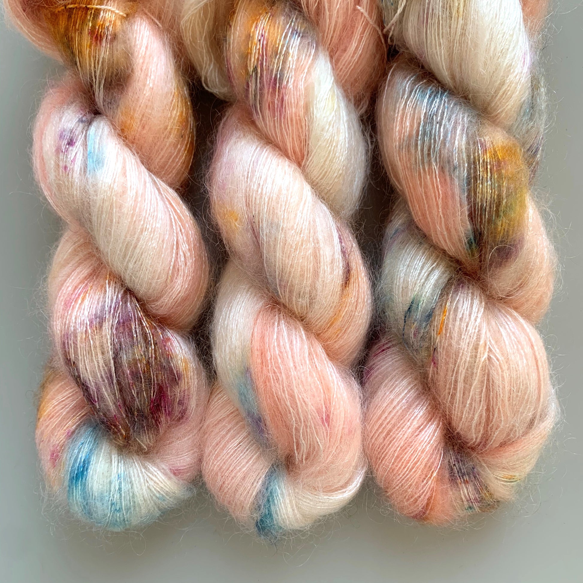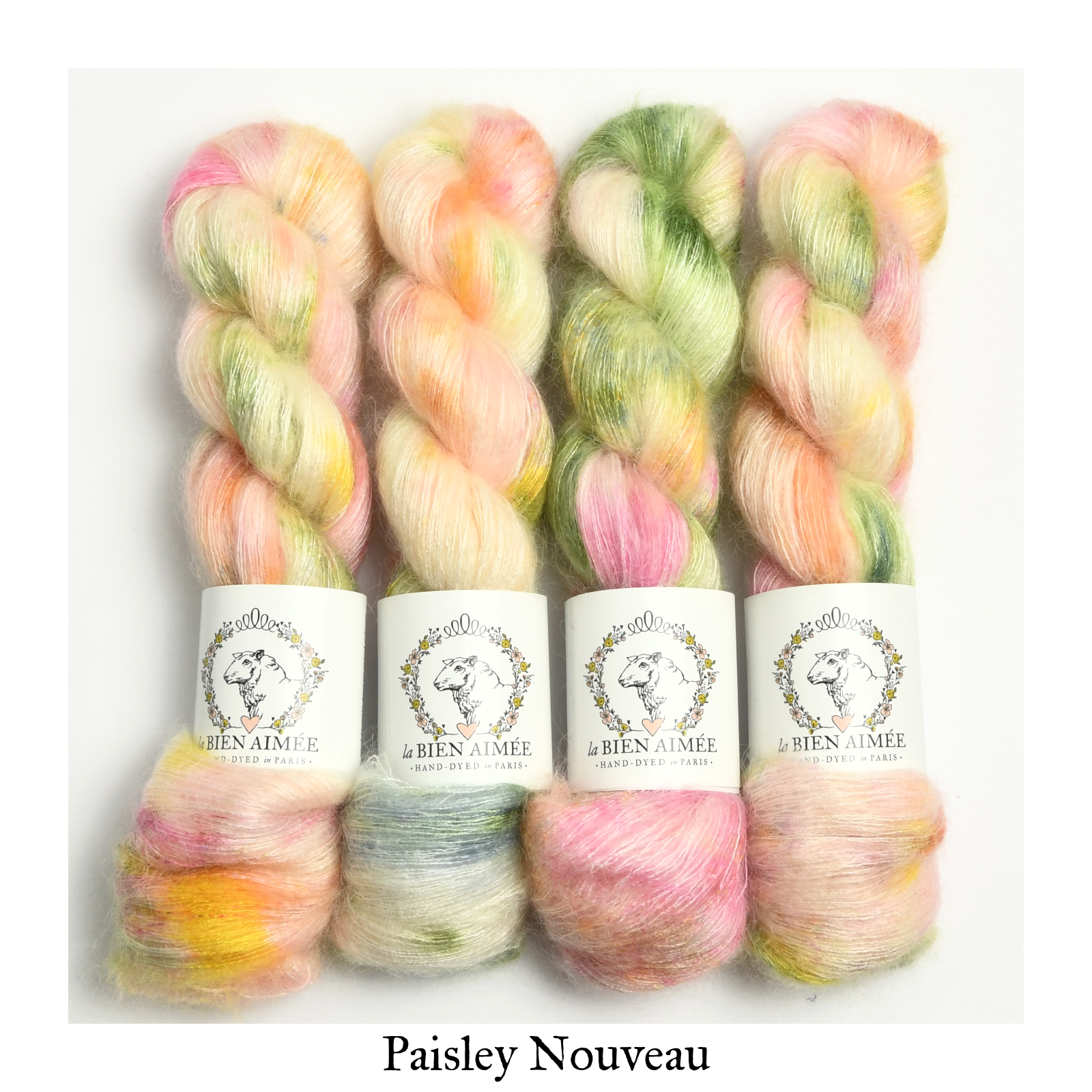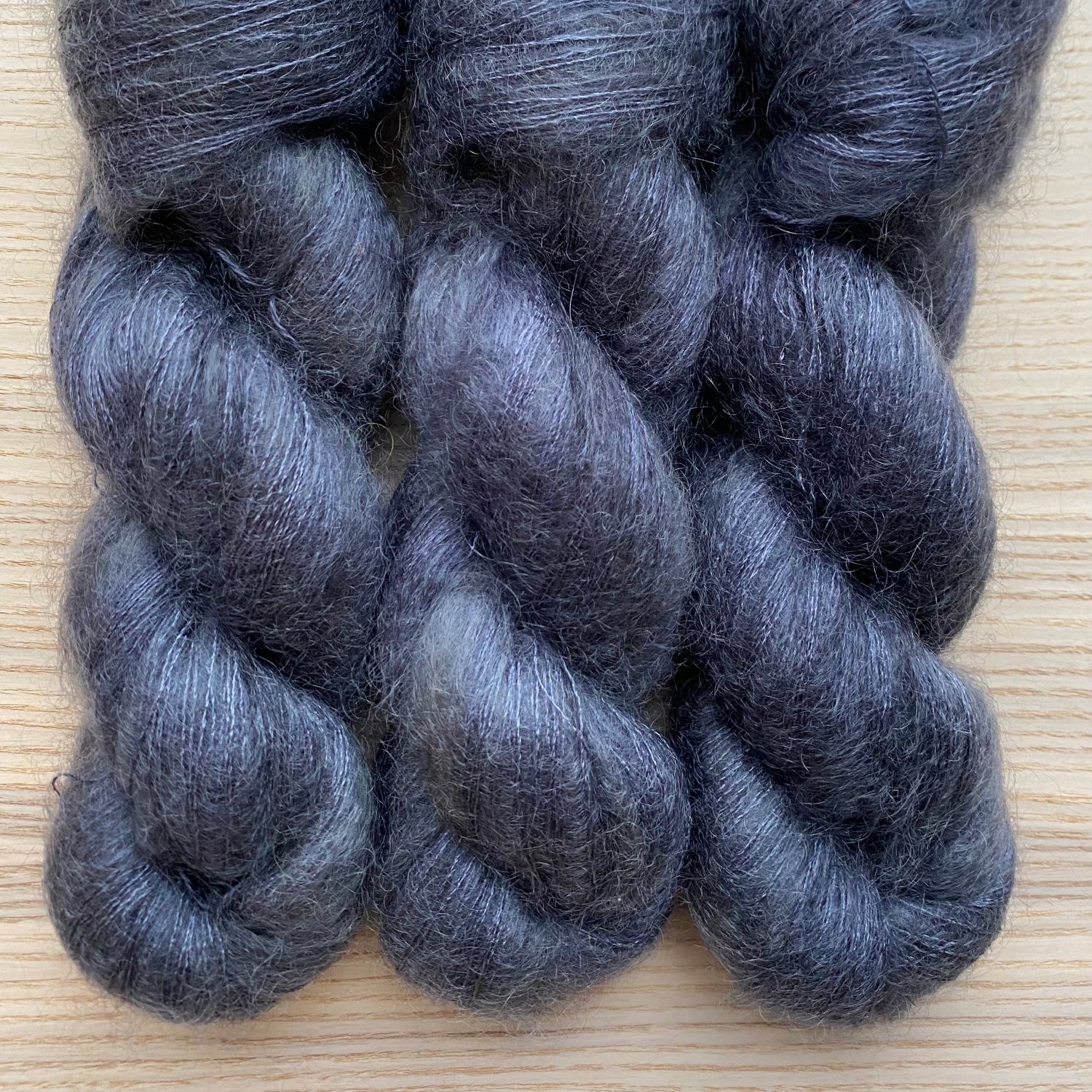 La Bien Aimée Mohair Silk is a soft and luxurious blend of mohair and Mulberry silk. A lace weight with almost 550 yards, it adds a lovely halo to any garment or accessory, while staying light and warm at the same time. It is perfect mixed with our other merino bases, such as Singles, in Elton by Joji Locatelli, or Love Note by Tin Can Knits, or held together with Helix, like in Jennifer Steingass' Meadow Moon or Veera Valimaki's Old School sweater.