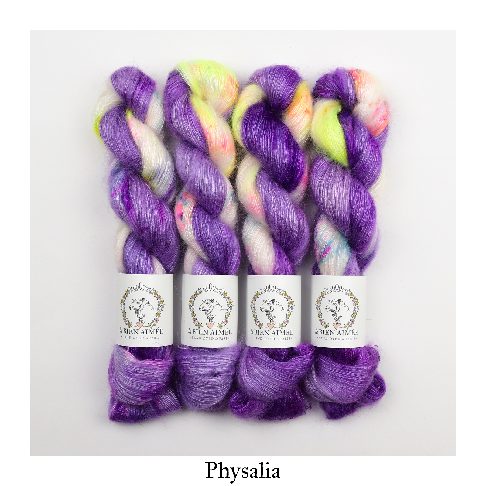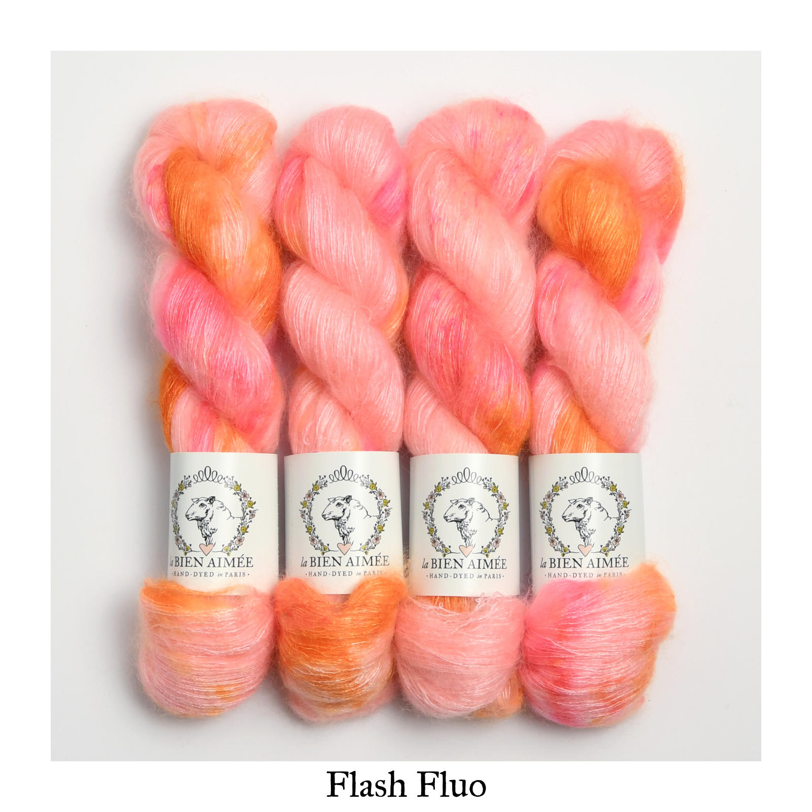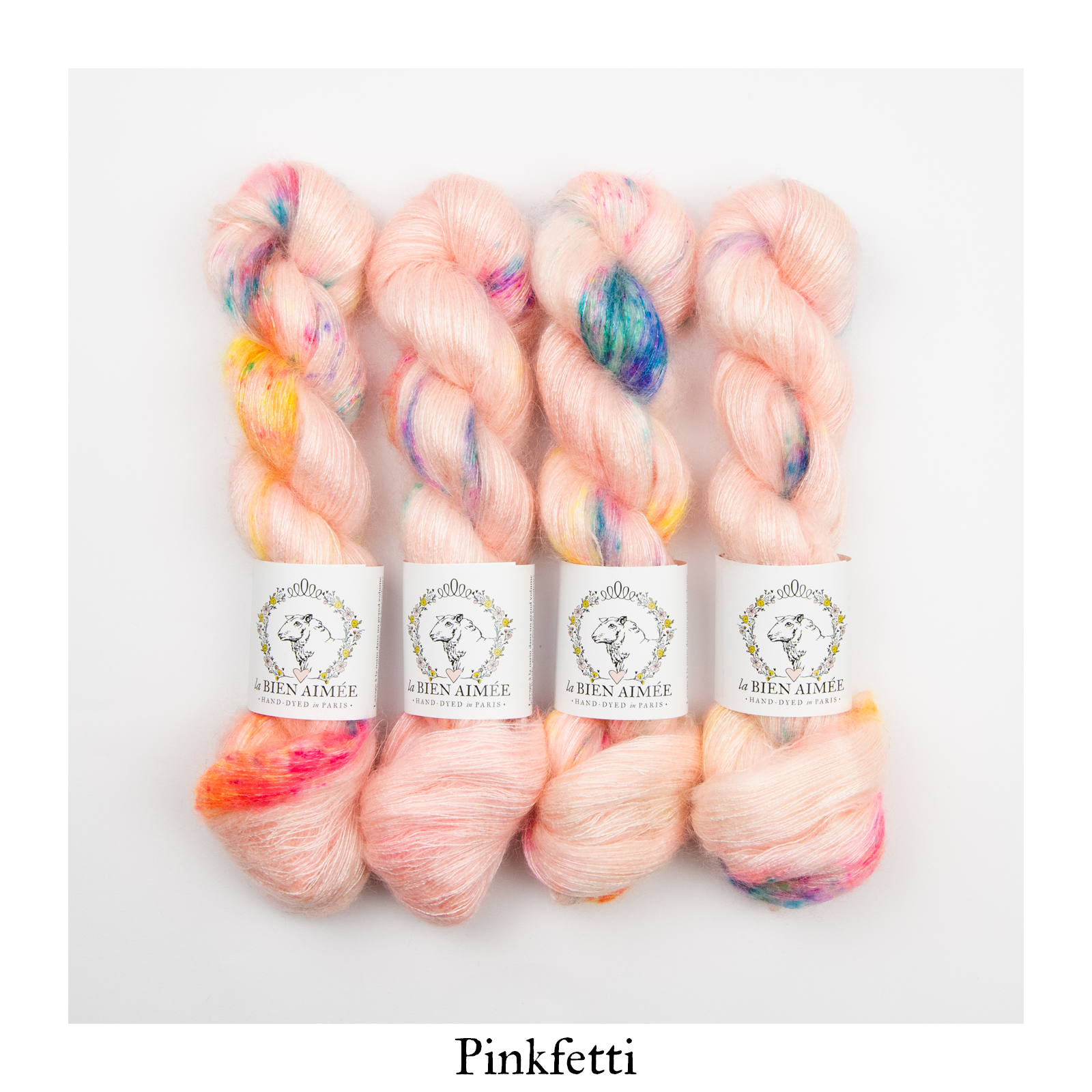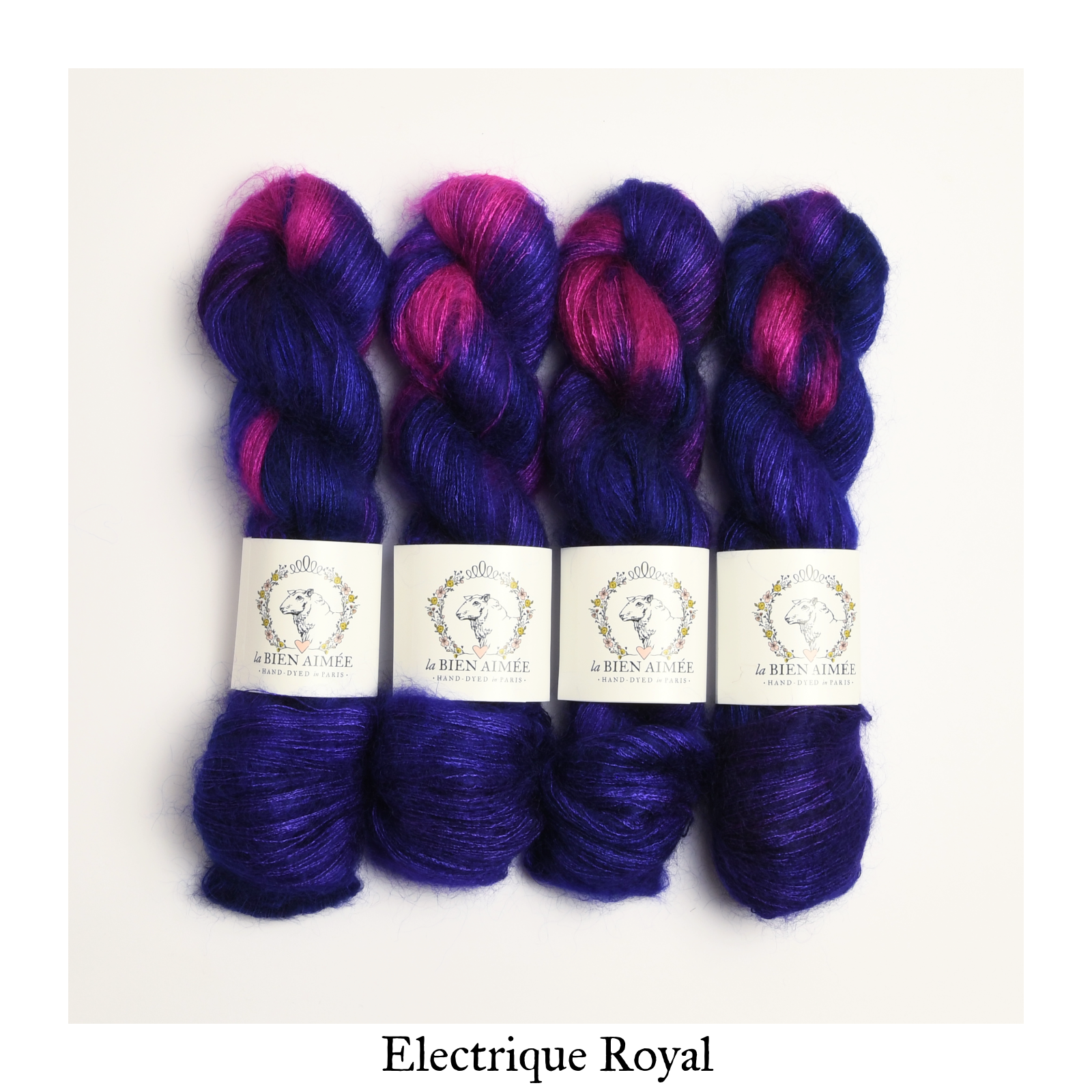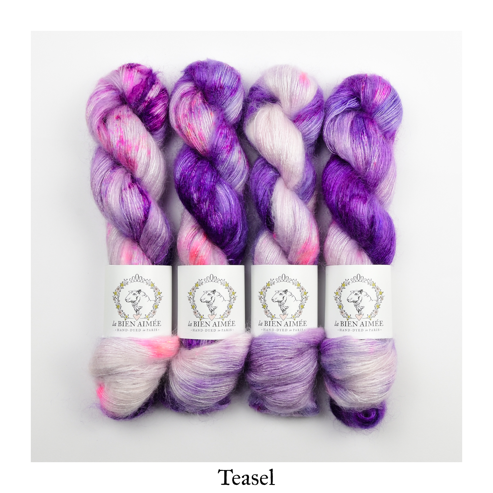 La base Mohair Silk de La Bien Aimée est un luxueux mélange de mohair et de soie de Mûrier, d'une douceur incomparable. Un fil d'épaisseur dentelle avec 500m pour 50g, il donne un très joli halo à tout vêtement ou accessoire tricoté, tout en restant léger et chaud à la fois. Idéal doublé avec nos bases en laine Mérinos, comme la Merino Single, dans le gilet Elton de Joji Locatelli, ou le pull Love Note de Tin Can Knits, il va aussi parfaitement avec notre base Helix, comme dans le modèle Meadow Moon de Jennifer Steingass, ou le patron Old School de Veera Valimaki. Ajoutez un fil de mohair à un bonnet en DK ou une paire de mitaines, et vous obtenez un accessoire doux et chaud, parfait pour l'hiver! Le mohair apporte aussi brillance et relief à tout modèle de châle, soit doublé avec votre laine principale, soit en rayures fines pour un rendu hyper léger. |
