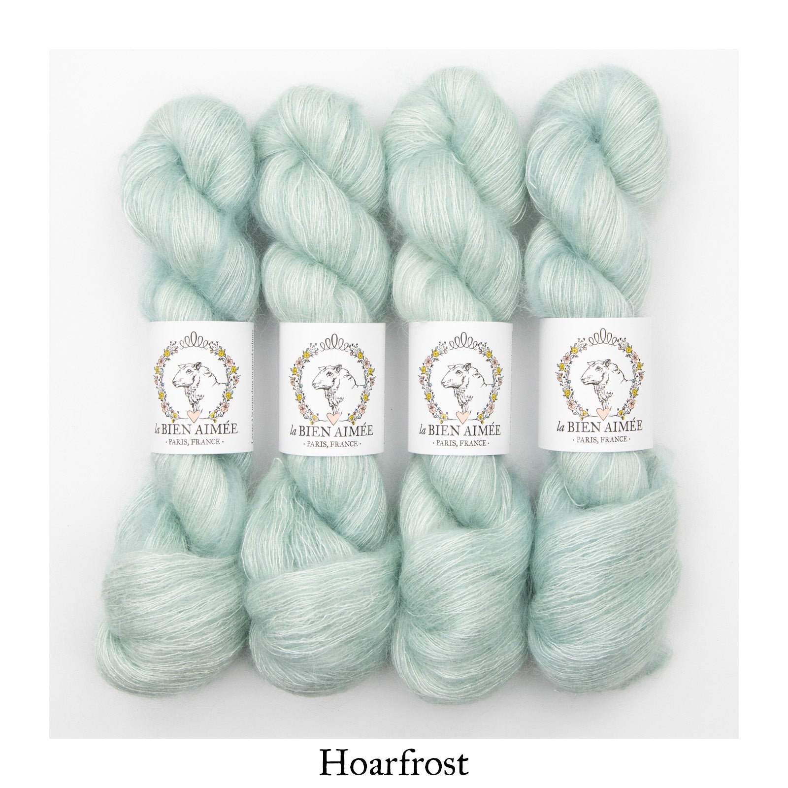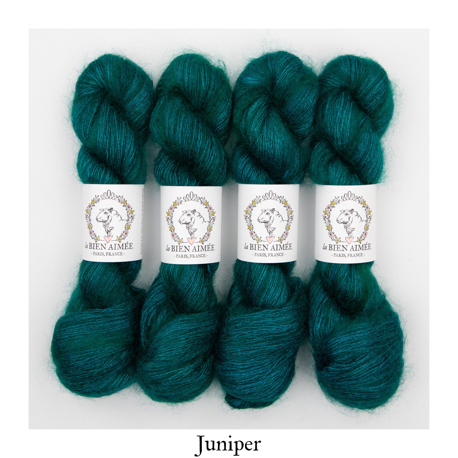 La Bien Aimée Mohair Silk is a soft and luxurious blend of mohair and Mulberry silk. A lace weight with almost 550 yards, it adds a lovely halo to any garment or accessory, while staying light and warm at the same time. It is perfect mixed with our other merino bases, such as Singles, in Elton by Joji Locatelli, or Love Note by Tin Can Knits, or held together with Helix, like in Jennifer Steingass' Meadow Moon or Veera Valimaki's Old School sweater.