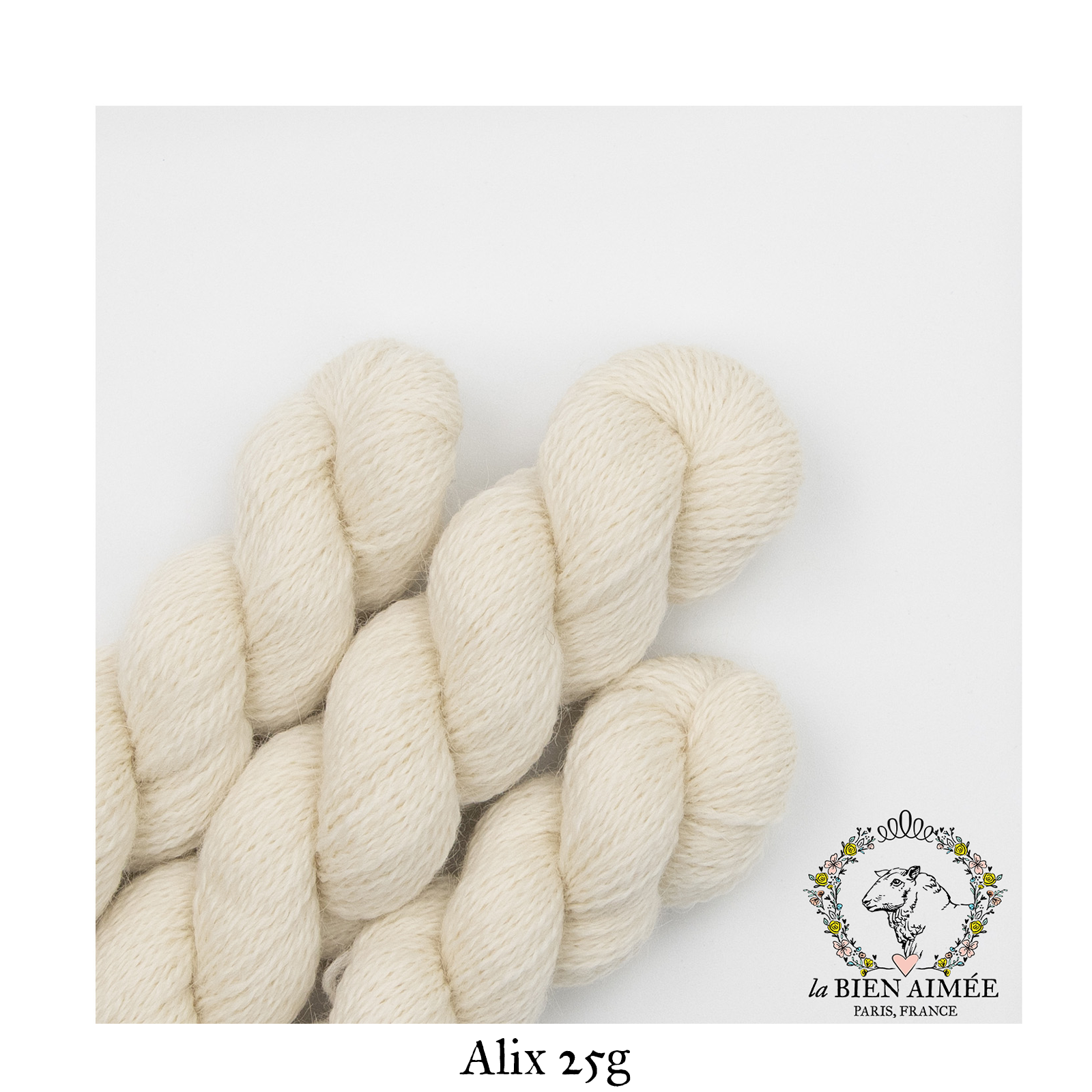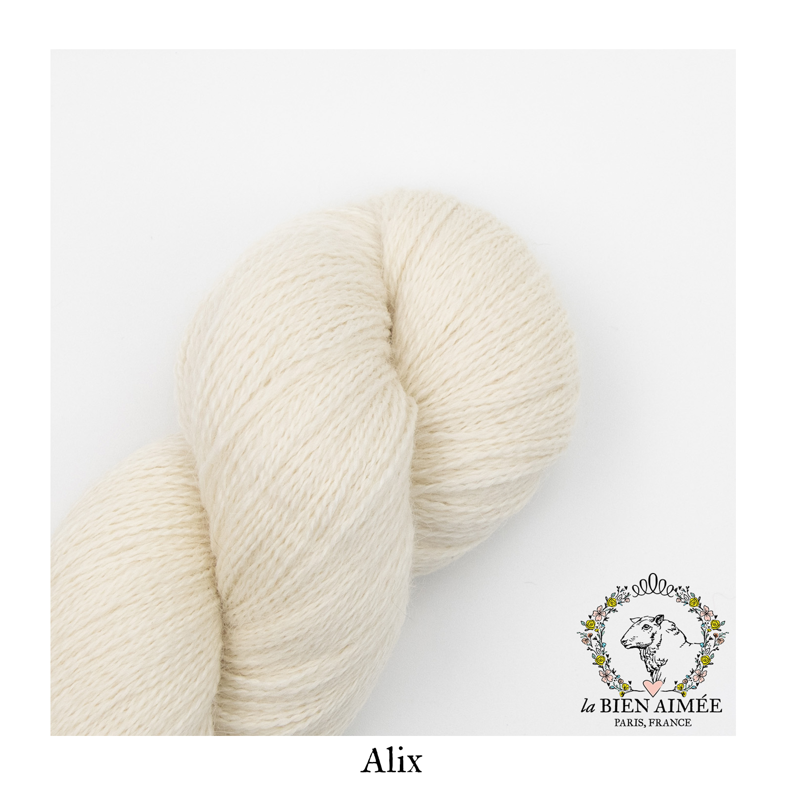 Alix: 70% Falkland Merino, 30% Suri Alpaca,