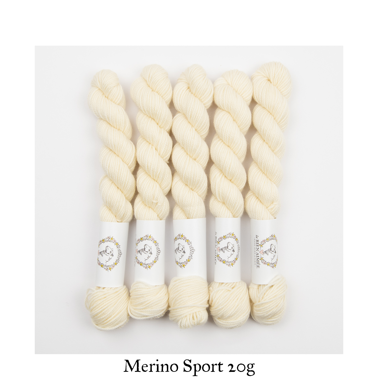 Merino Sport: 100% superwash merino, 325m (355yds) for 100g.