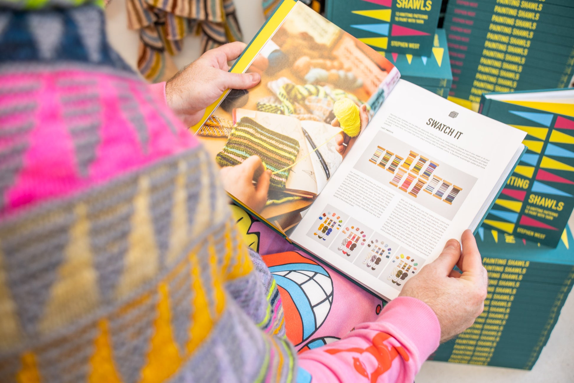 Painting Shawls contains 13 knitting patterns to paint with yarn. The shawl patterns featured in the book are a mixture of new and existing Westknits shawl patterns. They all feature a main colour with contrast colour pops, so you can customise the colours for your own wearable work of art.