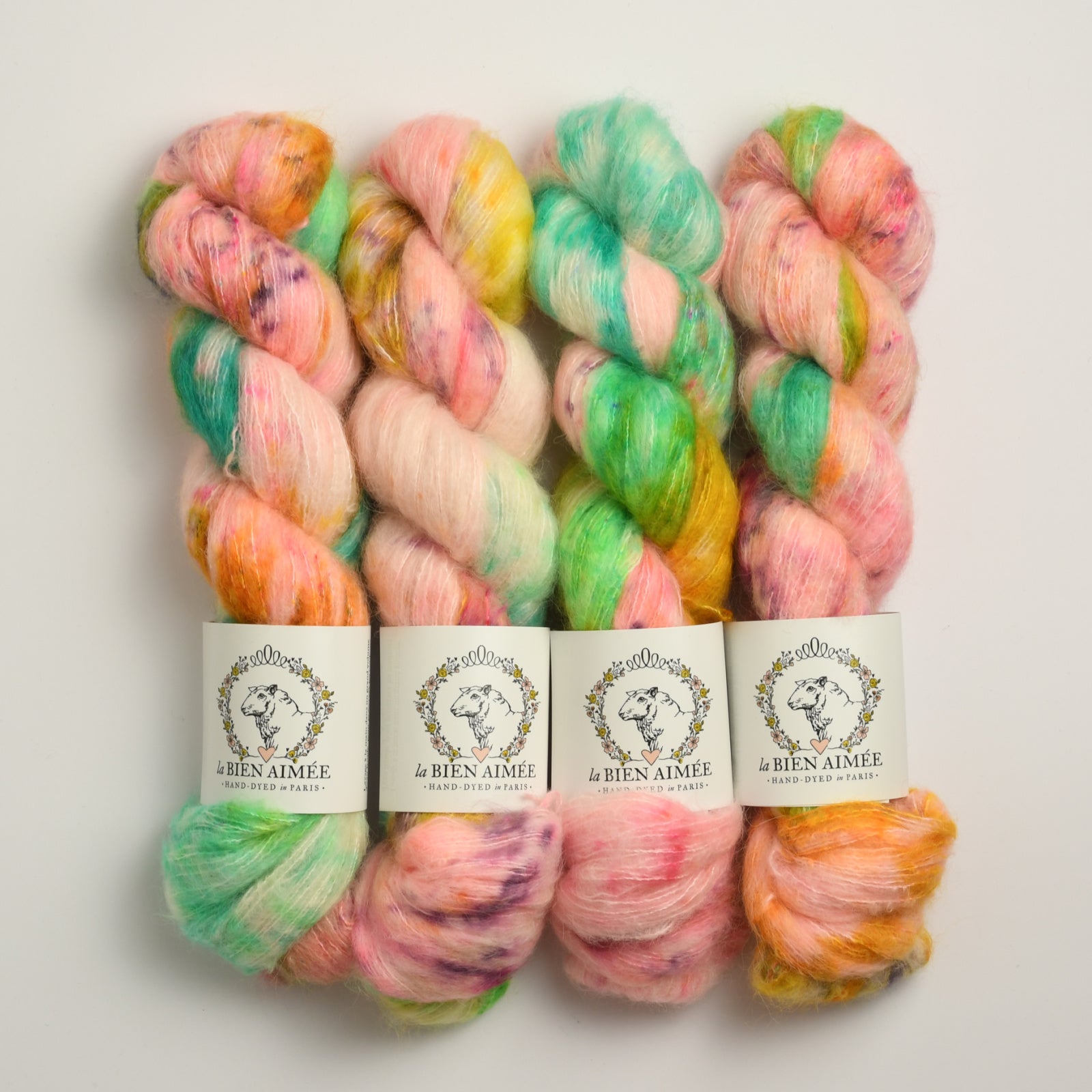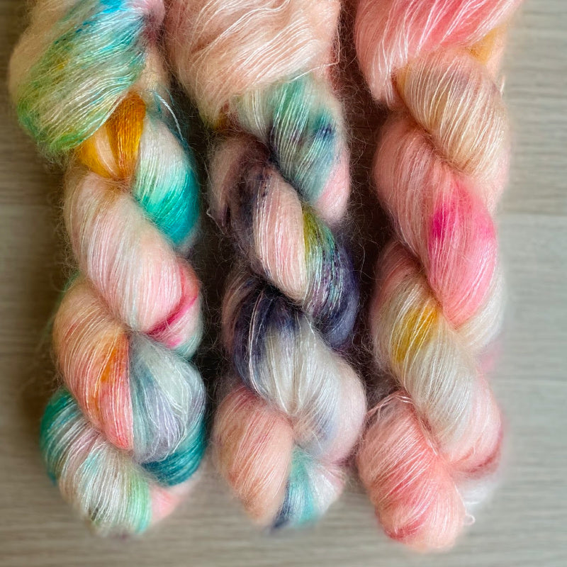 Mohair Silk: 70% Mohair, 30% Mulberry Silk, approx 500 meters (546 yards) for 50g.