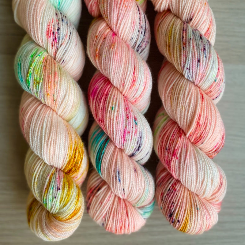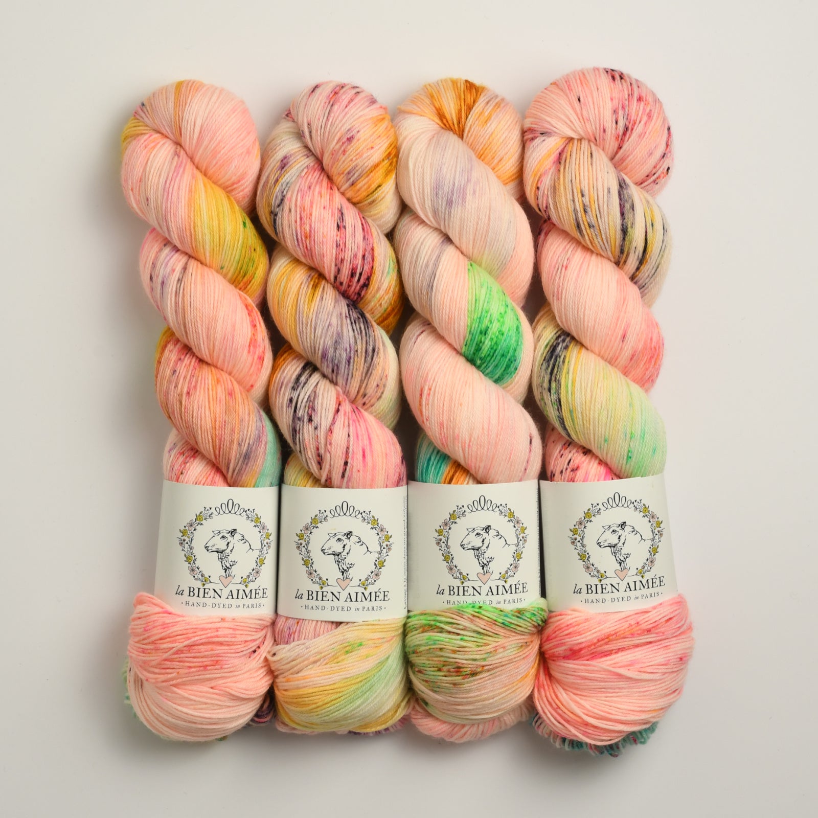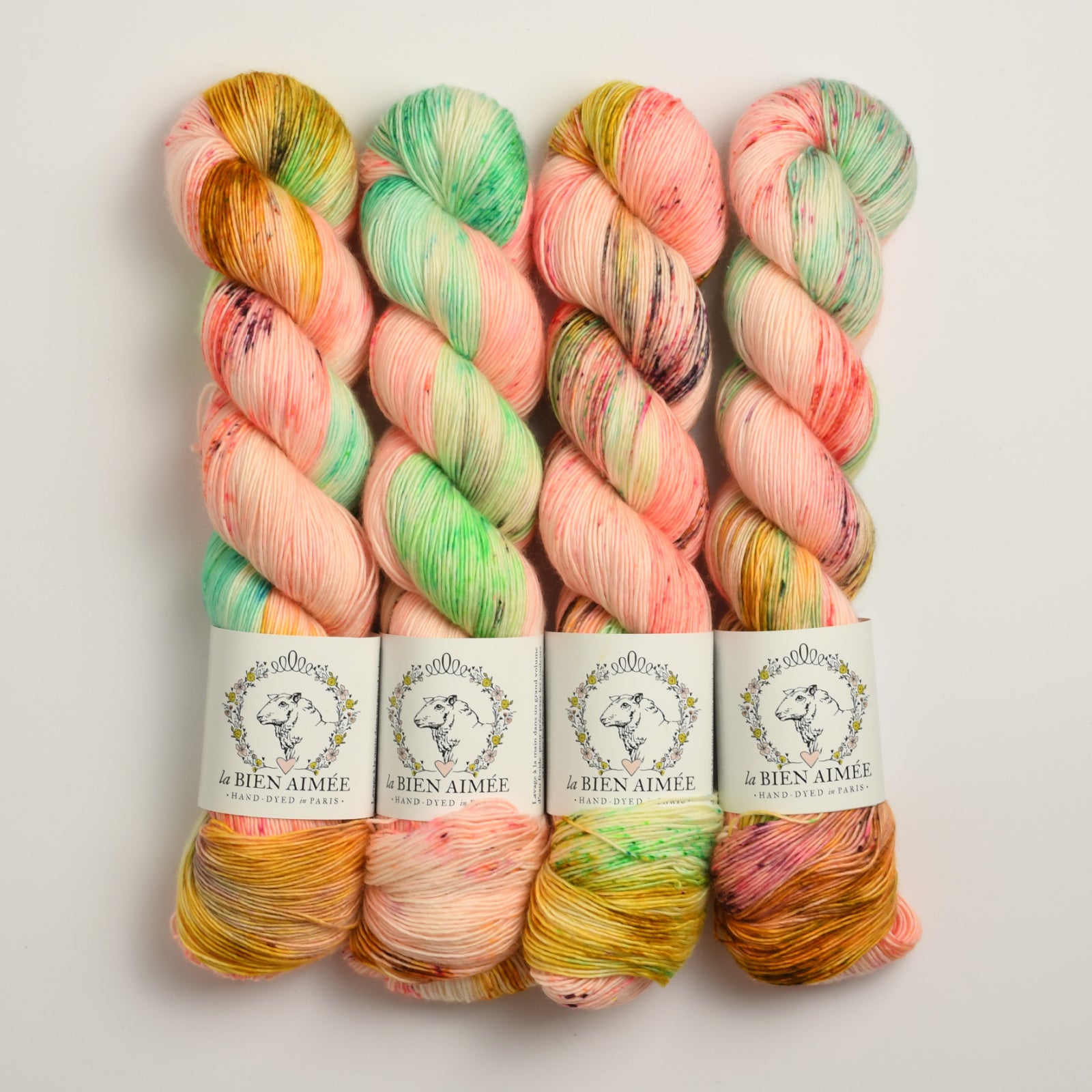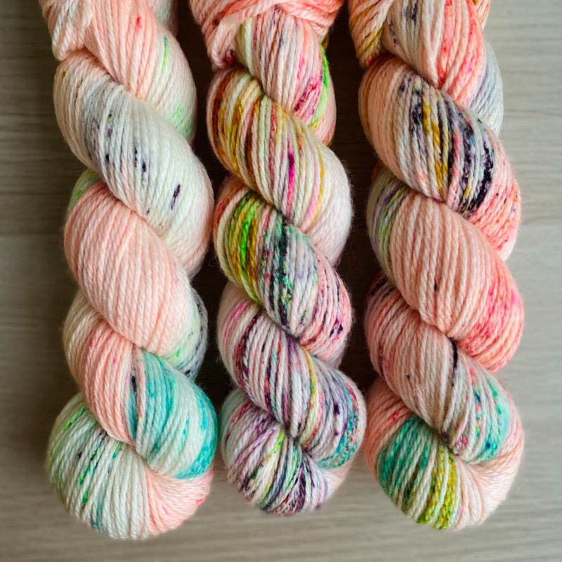 A note from the dyer: when knitting the colors of this collection for garments, it is ideal to alternate skeins to get even color coverage. These colors will pool, if that is the color effect you are looking for, embrace it! I especially love how these colors look knit up in socks for the pooling effect.