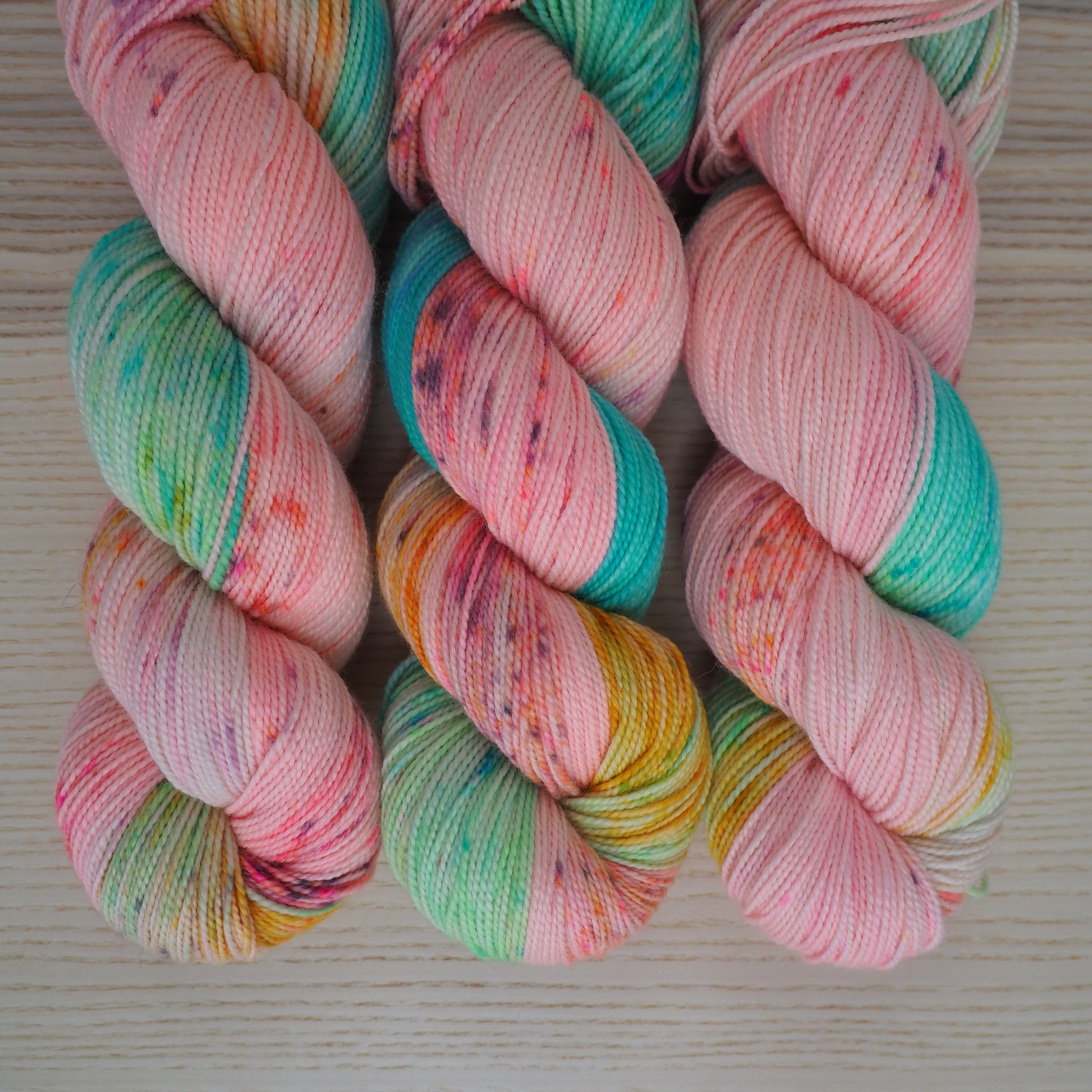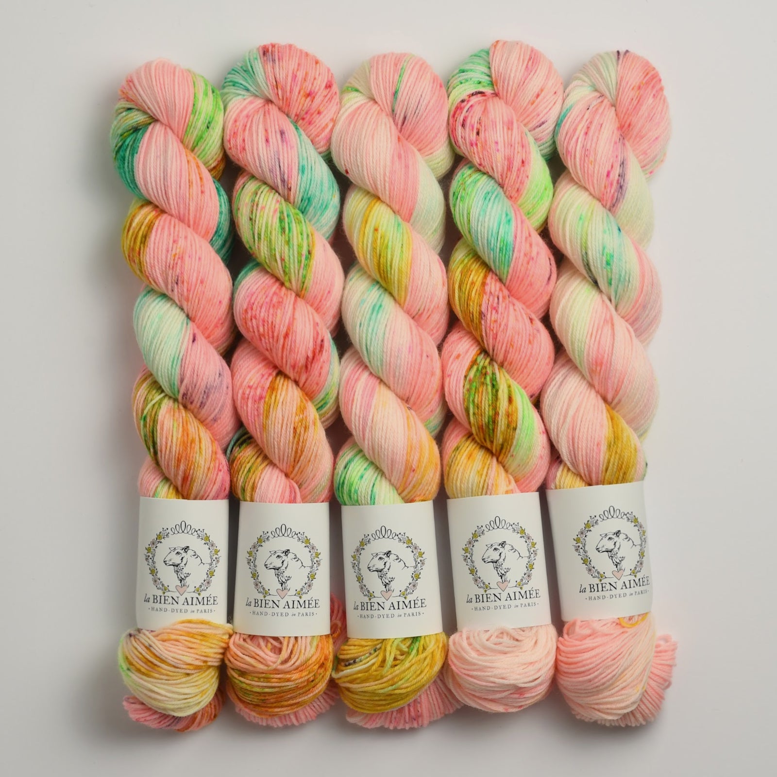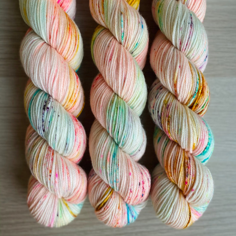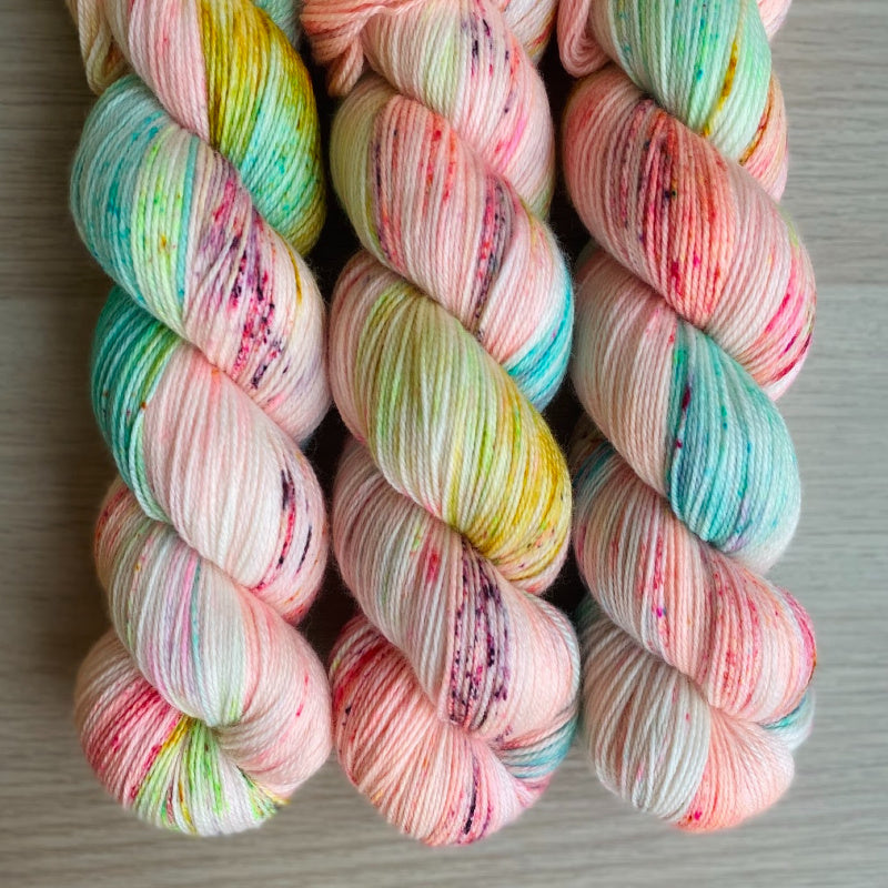 A note from the dyer: when knitting the colors of this collection for garments, it is ideal to alternate skeins to get even color coverage. These colors will pool, if that is the color effect you are looking for, embrace it! I especially love how these colors look knit up in socks for the pooling effect.