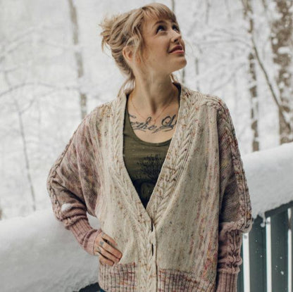 Le superbe Rose Cardigan d'Andrea Mowry est un véritable plaisir à tricoter avec sa construction unique latérale, ses torsades et coutures apparentes, mais surtout son beau dégradé; ce gilet seyant et oversize à manches chauve-souris est aussi beau qu'il est plaisant à tricoter.