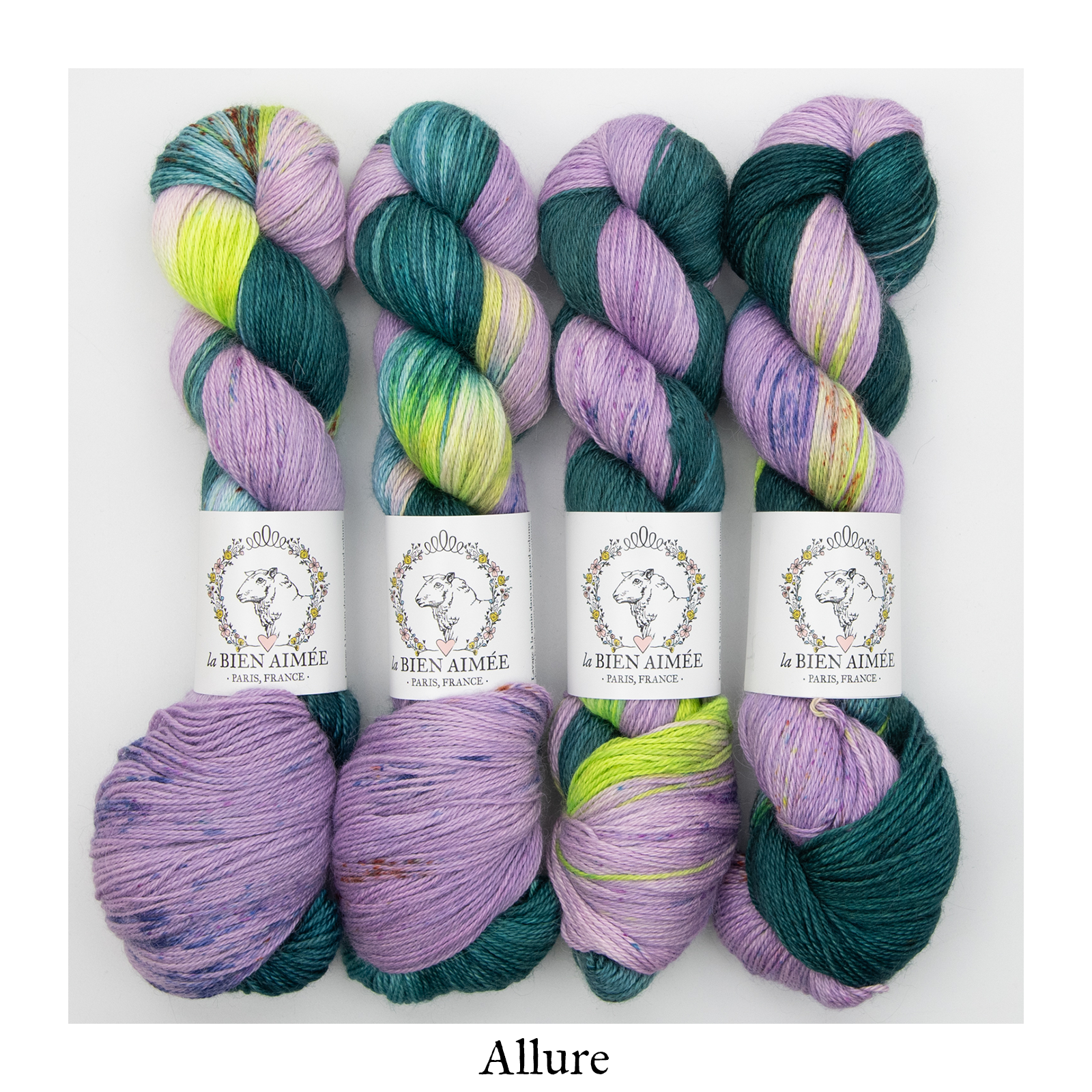 Alix: 70% Falkland Merino, 30% Suri Alpaca, 650m (710yds) for 100g.