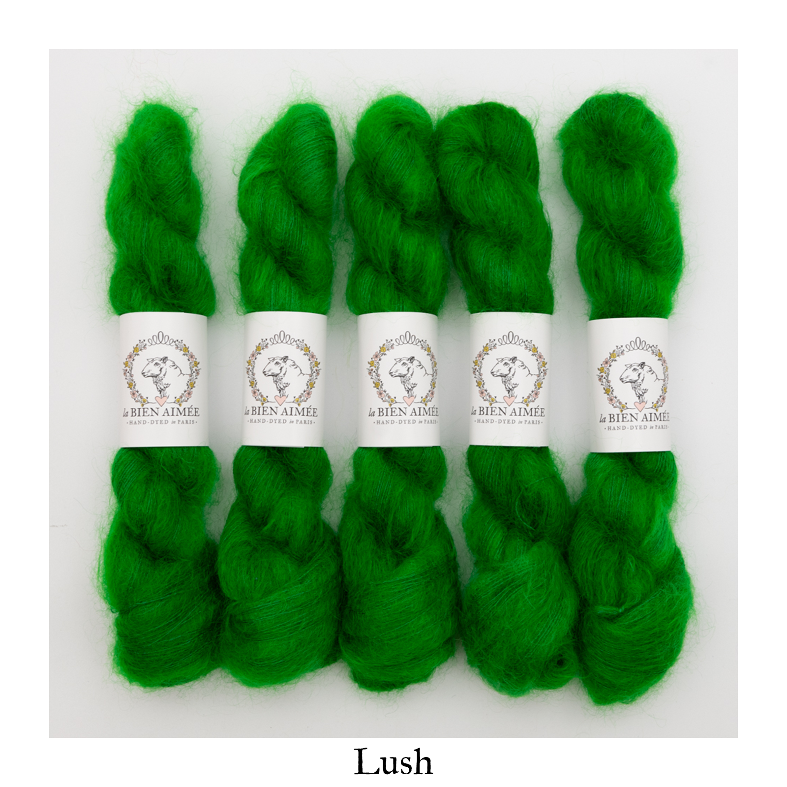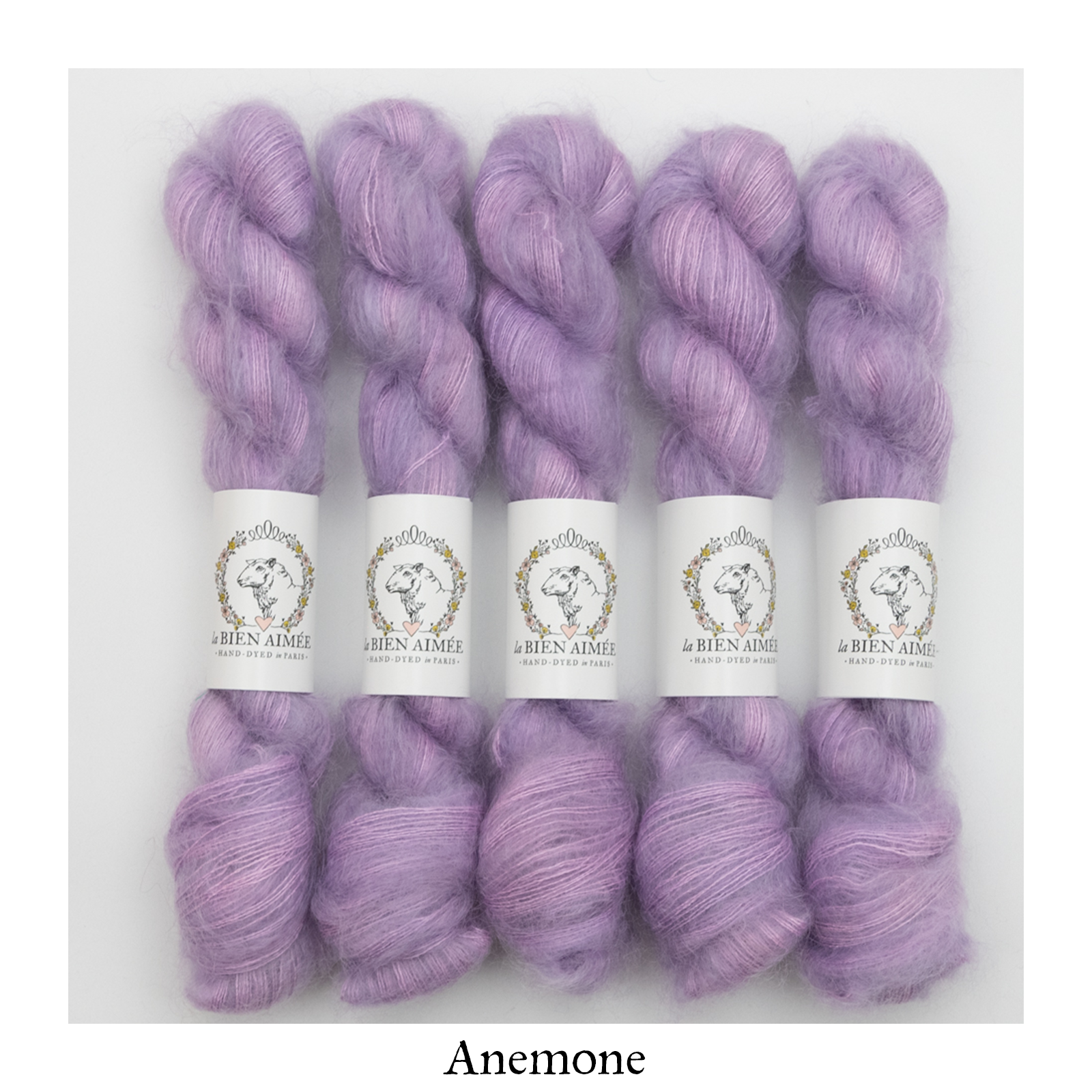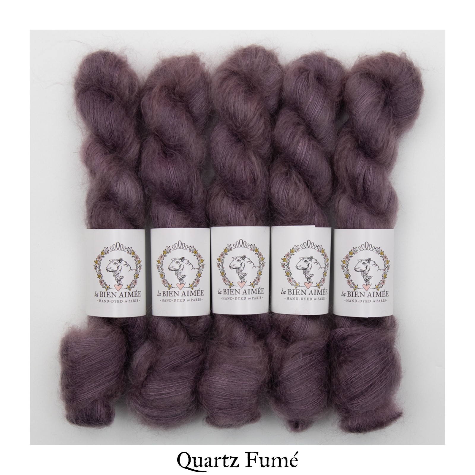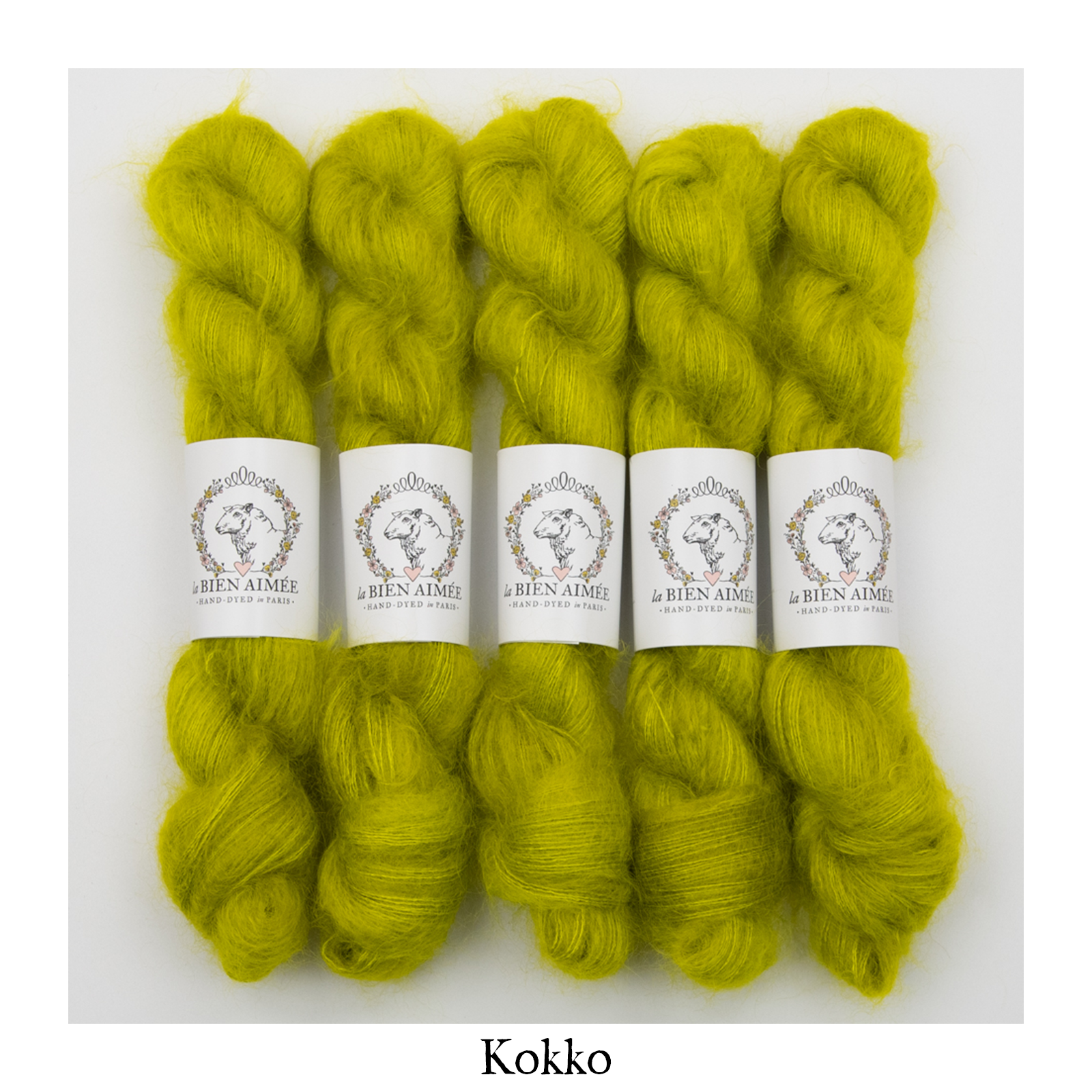 Un peu plus épais et duveteux que le Mohair Soie classique, Soyeux offre un halo magnifique et une douceur incroyable. Filé comme un lace traditionnel, il est composé à 64% de Kid Mohair et à 36% de Soie pour un confort optimal et un tombé élégant.