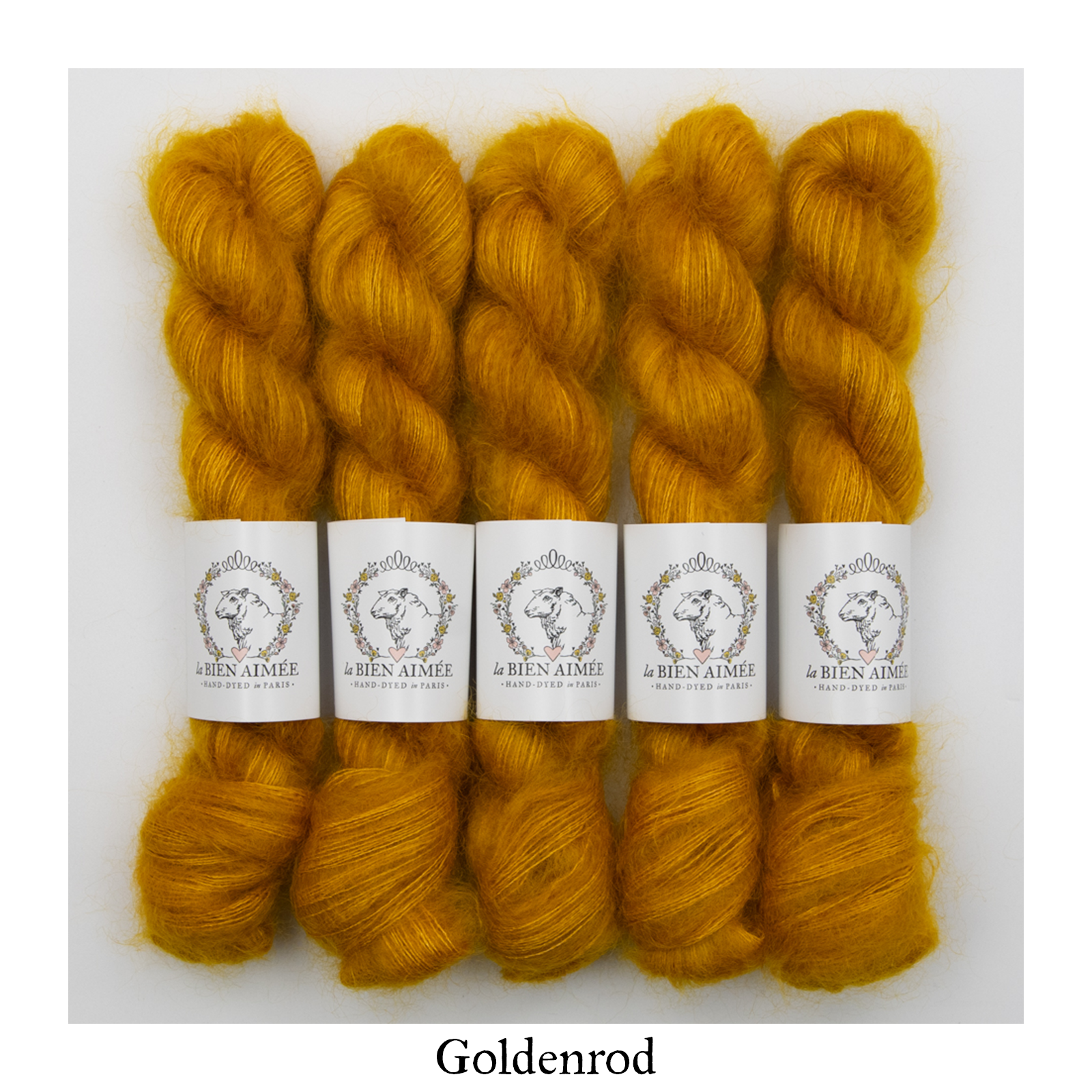 Slightly thicker and fluffier than classic Mohair Silk, Soyeux offers a beautiful halo and incredible softness. Spun as a traditional laceweight, it’s made with 64% Kid Mohair and 36% Silk for maximum comfort and an elegant drape.
