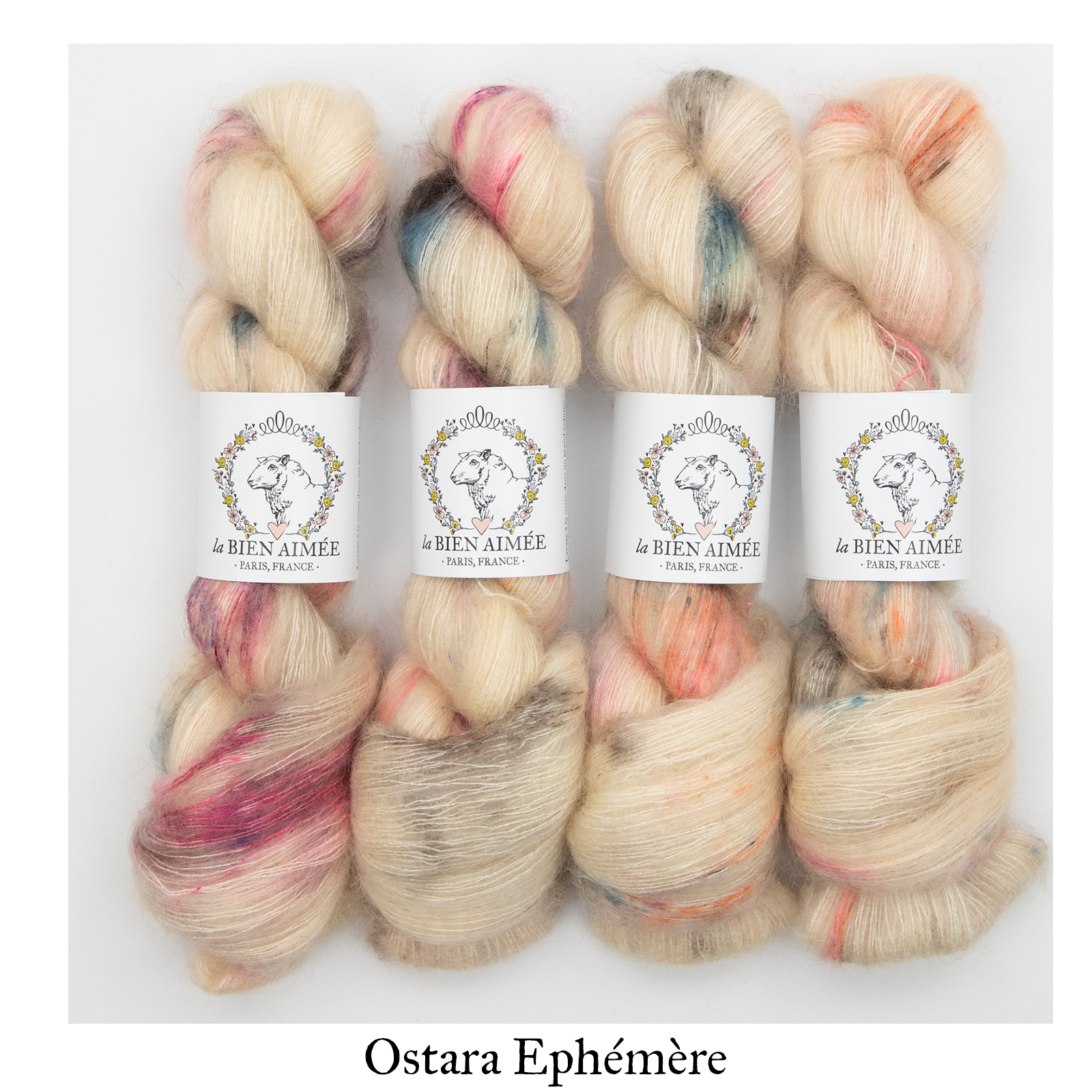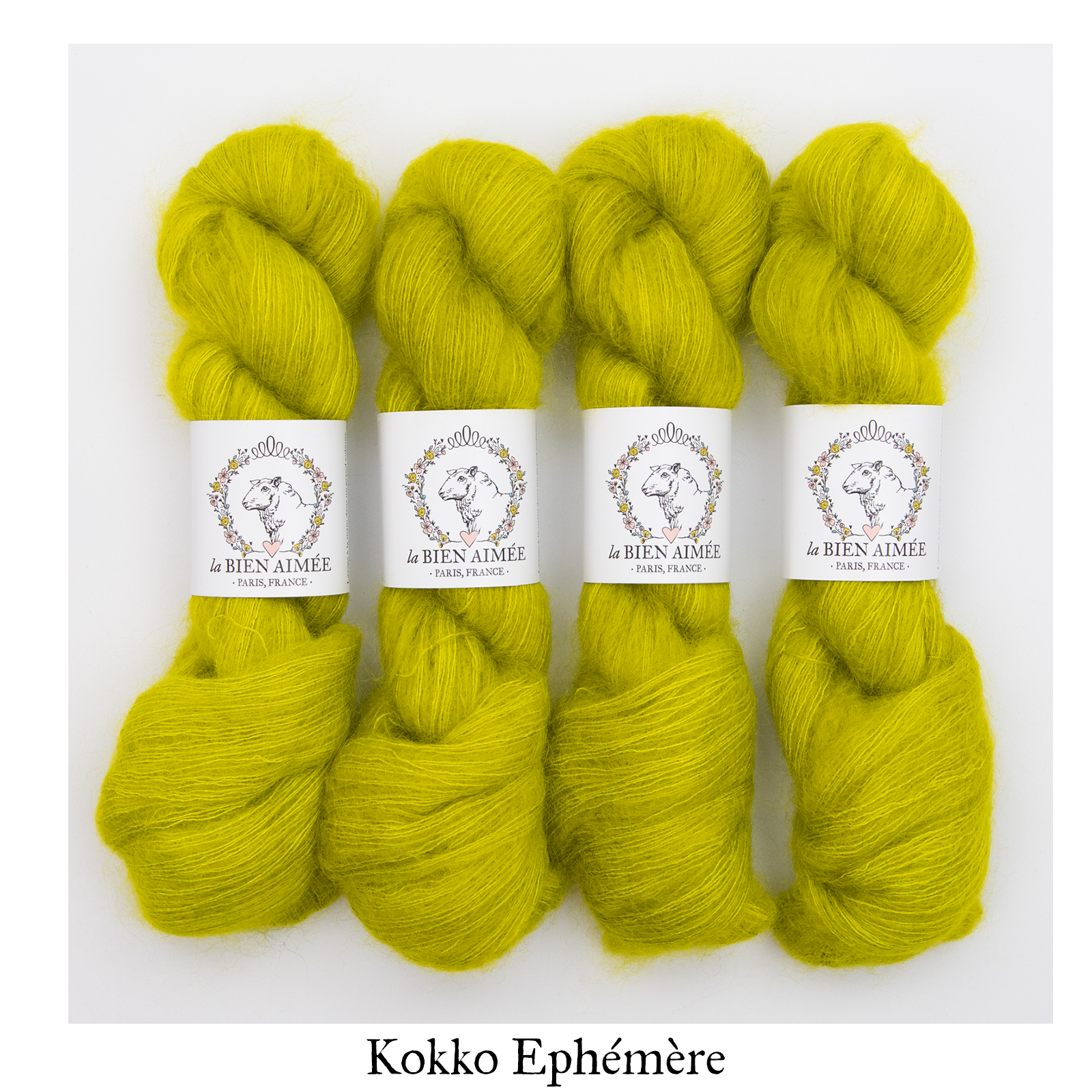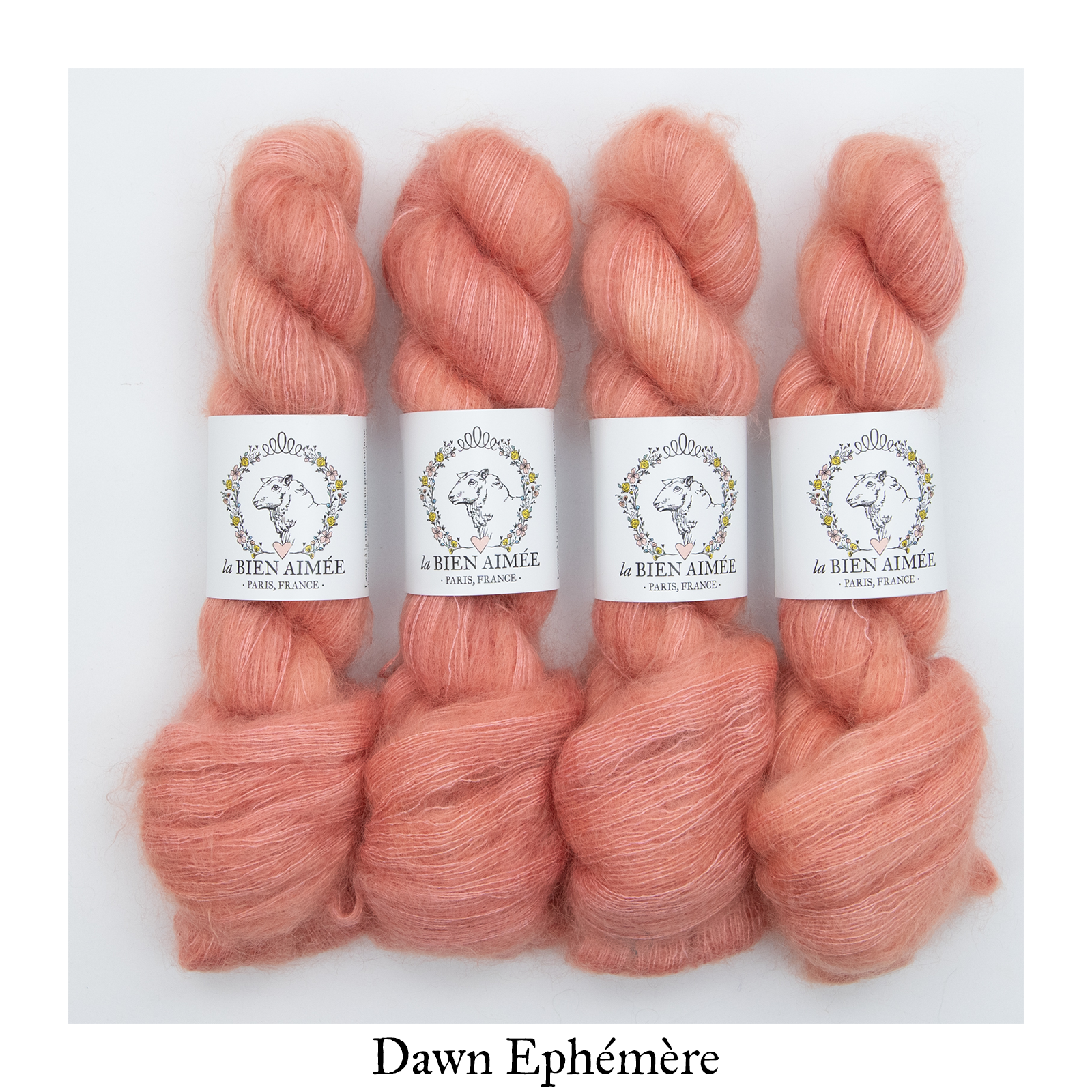 La laine teinte à la main est pleine de surprises. Ces écheveaux s’inscrivent dans notre démarche de réduction du gaspillage et de célébration du caractère créatif (et parfois imparfait) de la teinture artisanale. Chaque écheveau Éphémère est impossible à reproduire — une fois parti, il ne reviendra pas. Que vous tricotiez un projet complet ou que vous l’ajoutiez à votre palette, vous offrez une seconde vie à une laine vraiment unique. Laissez-vous surprendre, et créez quelque chose de magique. Soyeux est une toute nouvelle addition aux bases de fils duveteux de La Bien Aimée.Petite sœur de notre bien-aimée Mohair Silk, Soyeux est un peu plus épaisse et poilue que Mohair Silk. Elle est incroyablement douce et offre un halo étonnant. Soyeux a une épaisseur fil dentelle traditionnelle avec 420m pour un écheveau de 50g. Il est composé de 64% de Kid Mohair et de 36% de soie. Le fil de soie de Soyeux est un peu plus mat et épais que celui du Mohair Silk. Le Kid Mohair rend Soyeux extrêmement doux et lui donne une belle texture duveteuse. L'ajout d'un brin de Soyeux à votre projet modifiera légèrement l'échantillon de votre tricot, car il s'agit d'un fil dentelle plus épais que la Mohair Silk de La Bien Aimée. Nous avons hâte de tricoter cette nouvelle base pour un autre cardigan Elton, et pourquoi pas un Instant Crush ou Confluence super moelleux? |