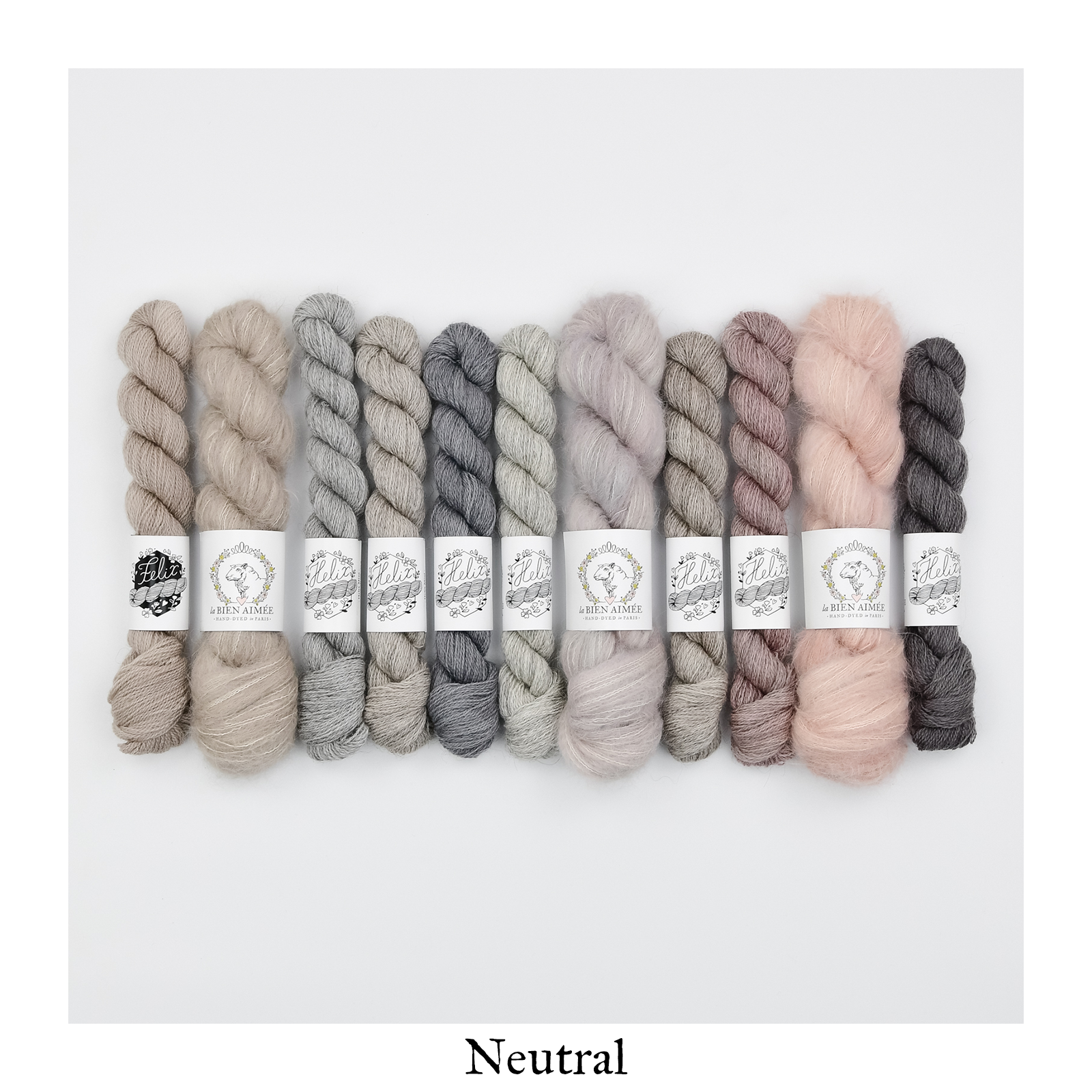 The Neutral version mixes Helix (or Felix) with Kumo as well and is a neutral lover's dream! It contains the following colors: Stone, Highgarden, Bone, French Grey, Direwolf, Avoine, Smoke and Parchment. Highgarden, French Grey and Bone are held with Kumo (Parchment goes with French Grey).