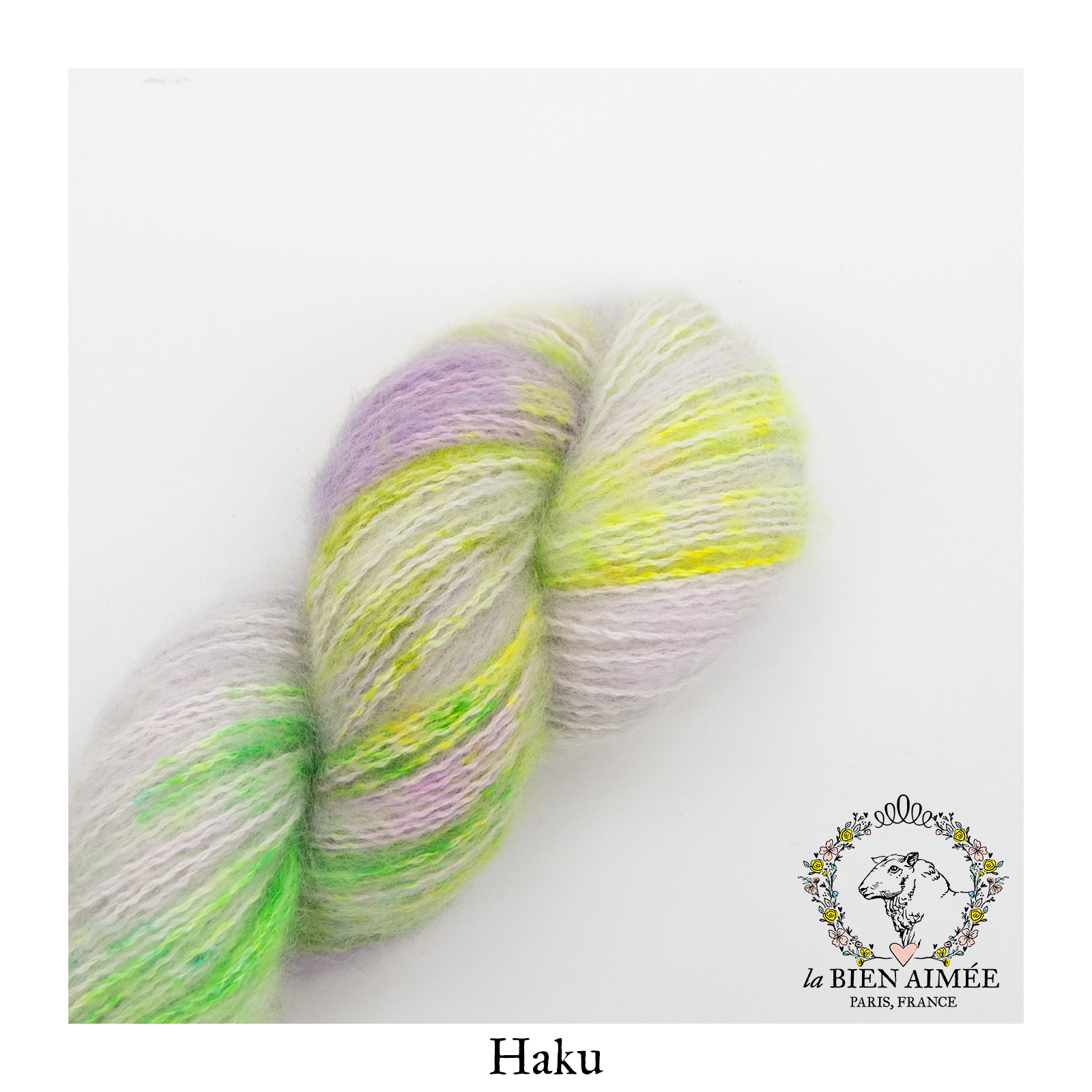 La Bien Aimée Volute is a beautiful new yarn base that allies the delicate softness of cashmere to the strength / sturdiness of a core in merino wool. A fluffy yarn, the cashmere is spun around a solid thread of merino wool. So you get the best of both worlds! A strong durable yarn with the softness / lightness of cashmere.