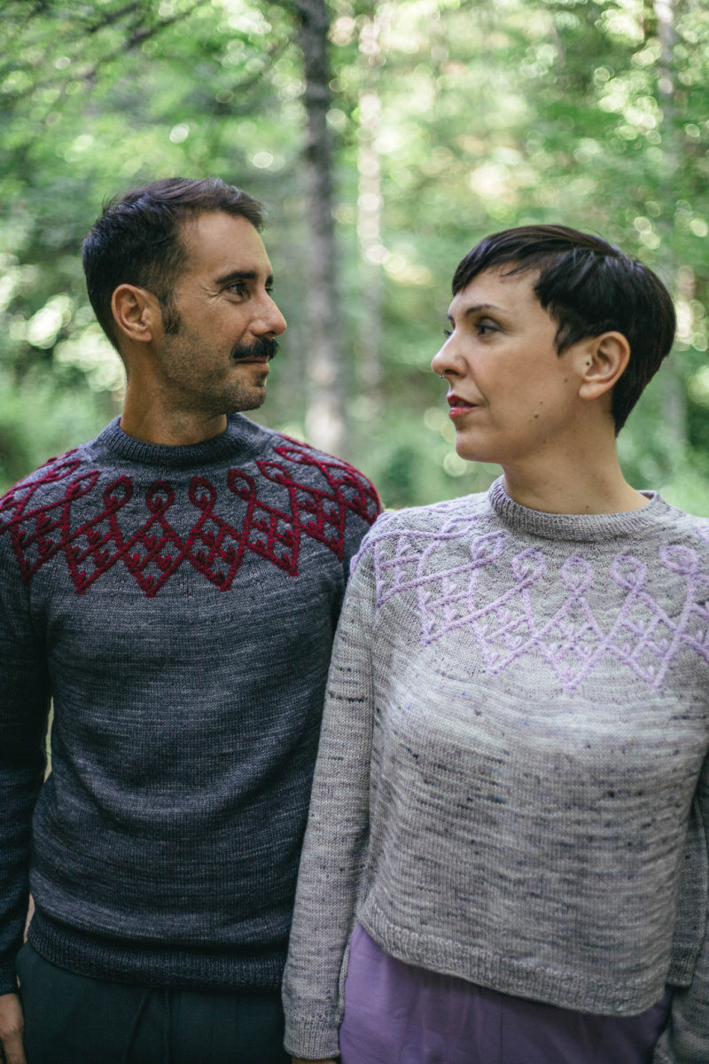 Paula Pereira's Pifano Sweater features La Bien Aimée Merino Super Sock! This stunning colorwork sweater is gender neutral and has an exquisite stranded colorwork yoke. The samples in the magazine were knit in colorways Ash and Eric Northman for the dark version, and Cassiopeia and Anemone for the light version. Write to us at coloradvice@labienaimee.com for more details about this pattern!